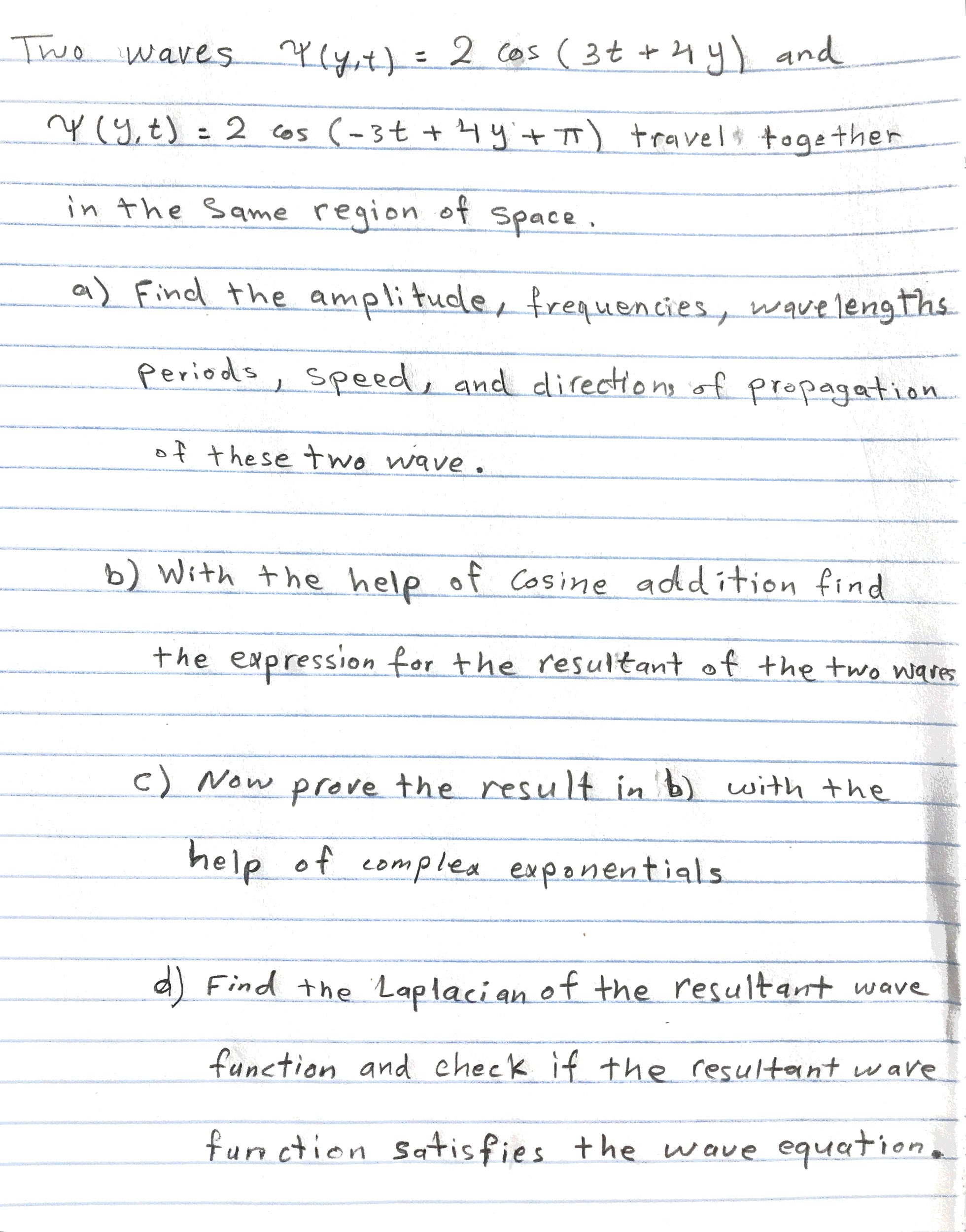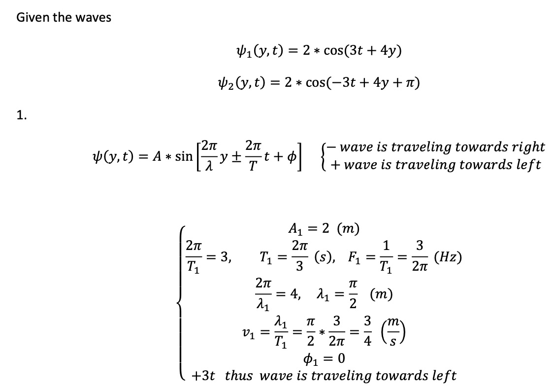 Two waves 4(y,t) = 2 COS ( 3t t 4y) and Y(y,t) = 2 COS (-3t + 4y +...