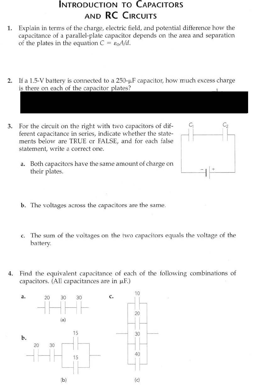 INTRODUCTION TO CAPACITORS AND RC CIRCUITS 1. Explain in terms o...