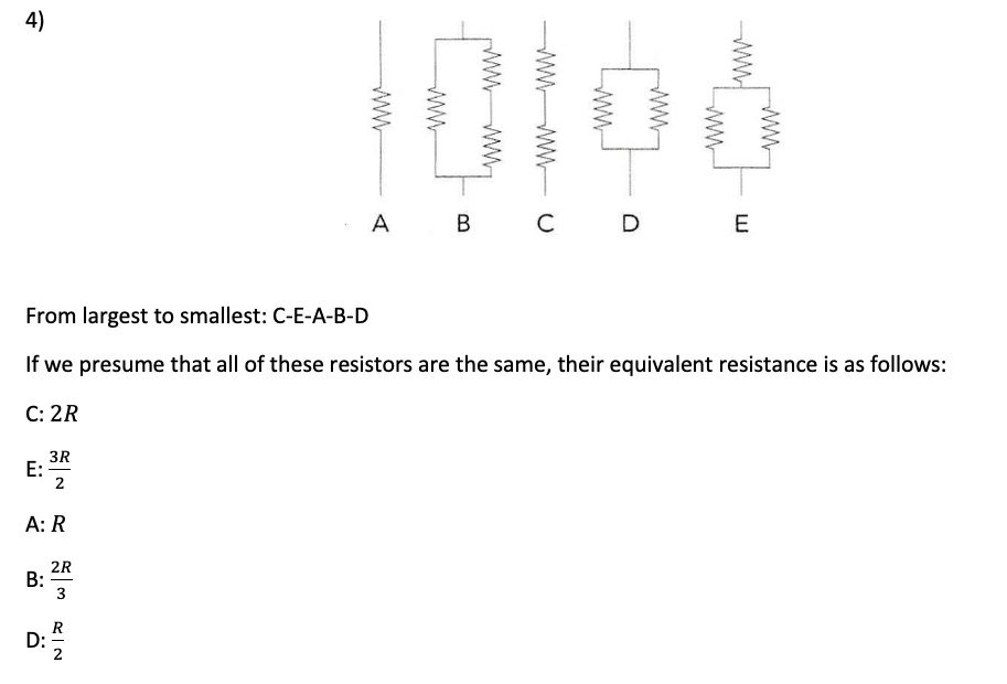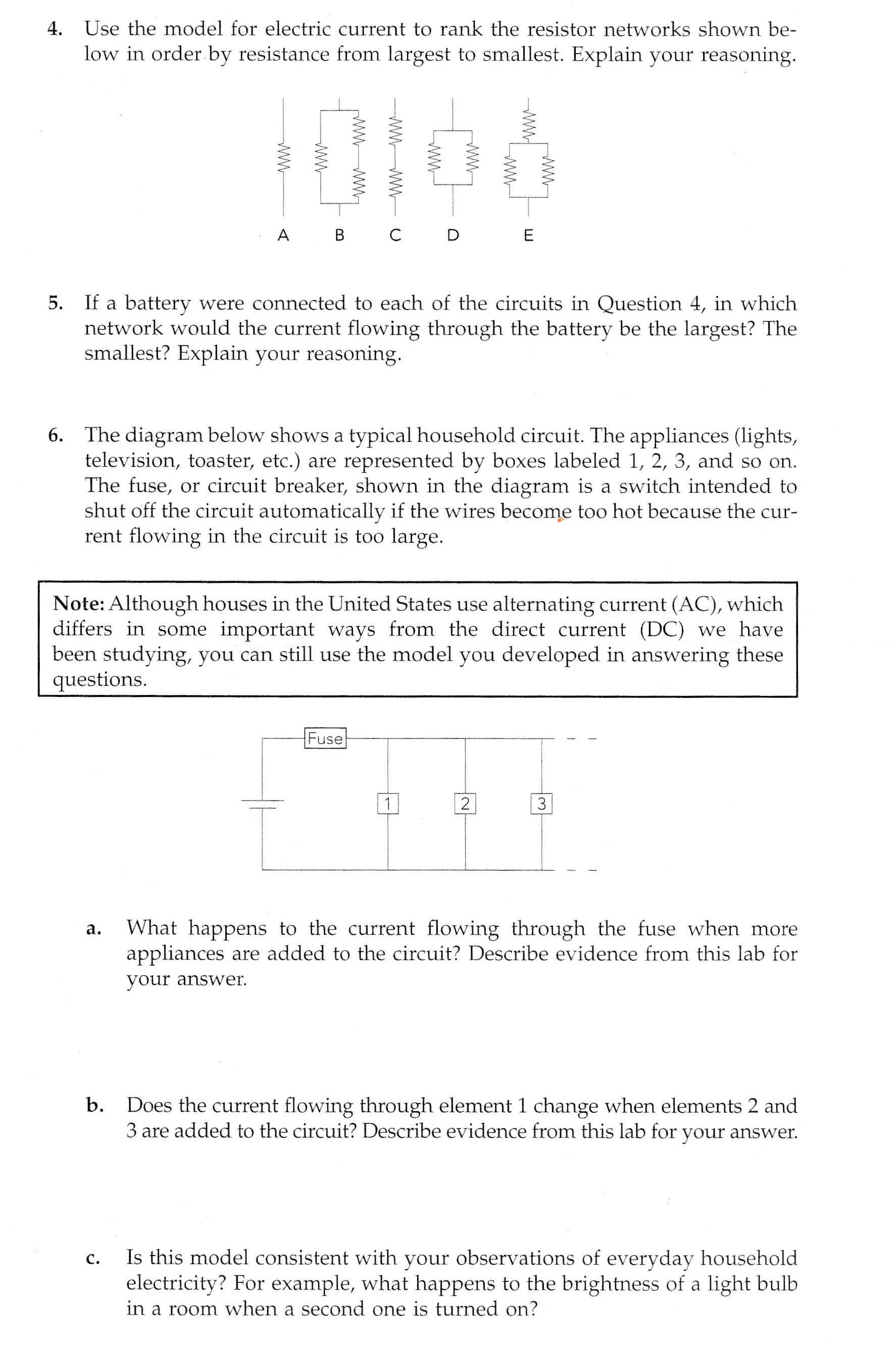 4. Use the model for electric current to rank the resistor network...