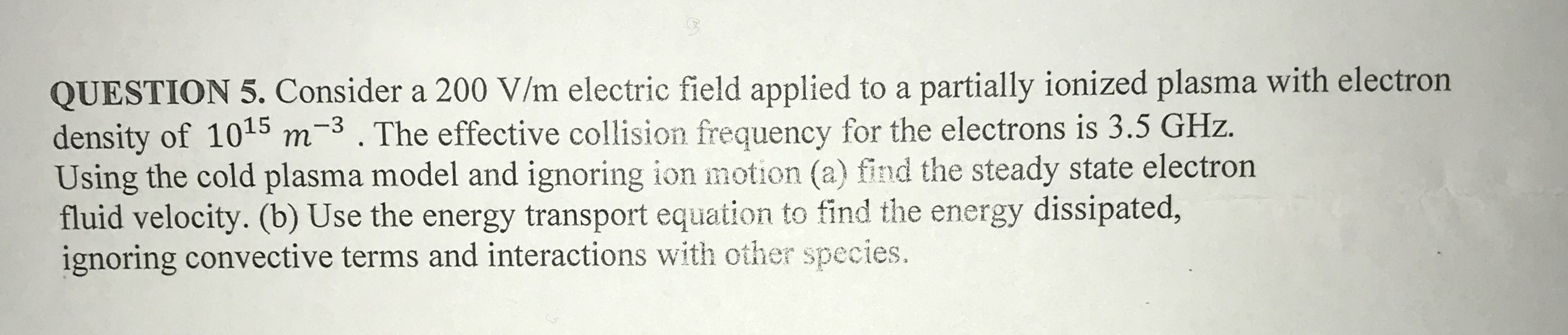 QUESTION 5. Consider a 200 V/m electric field applied to a partiall...
