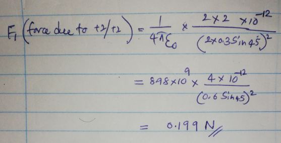 There are four charges, each with a magnitude of 2.0 μC. Two are p...