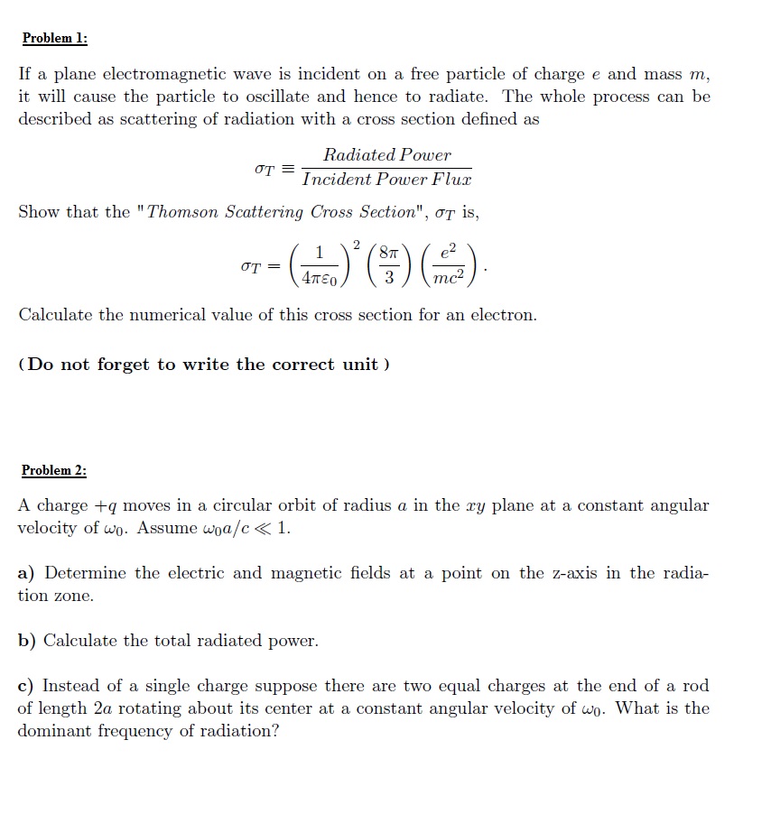 Problem 1: If a plane electromagnetic wave is incident on a free p...