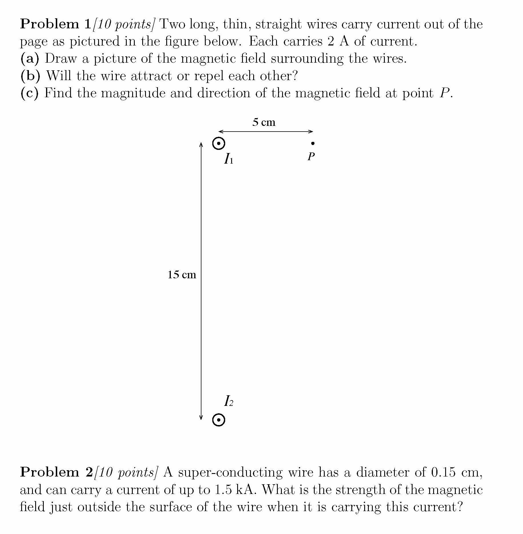Problem 1[10 points] Two long, thin, straight wires carry current o...