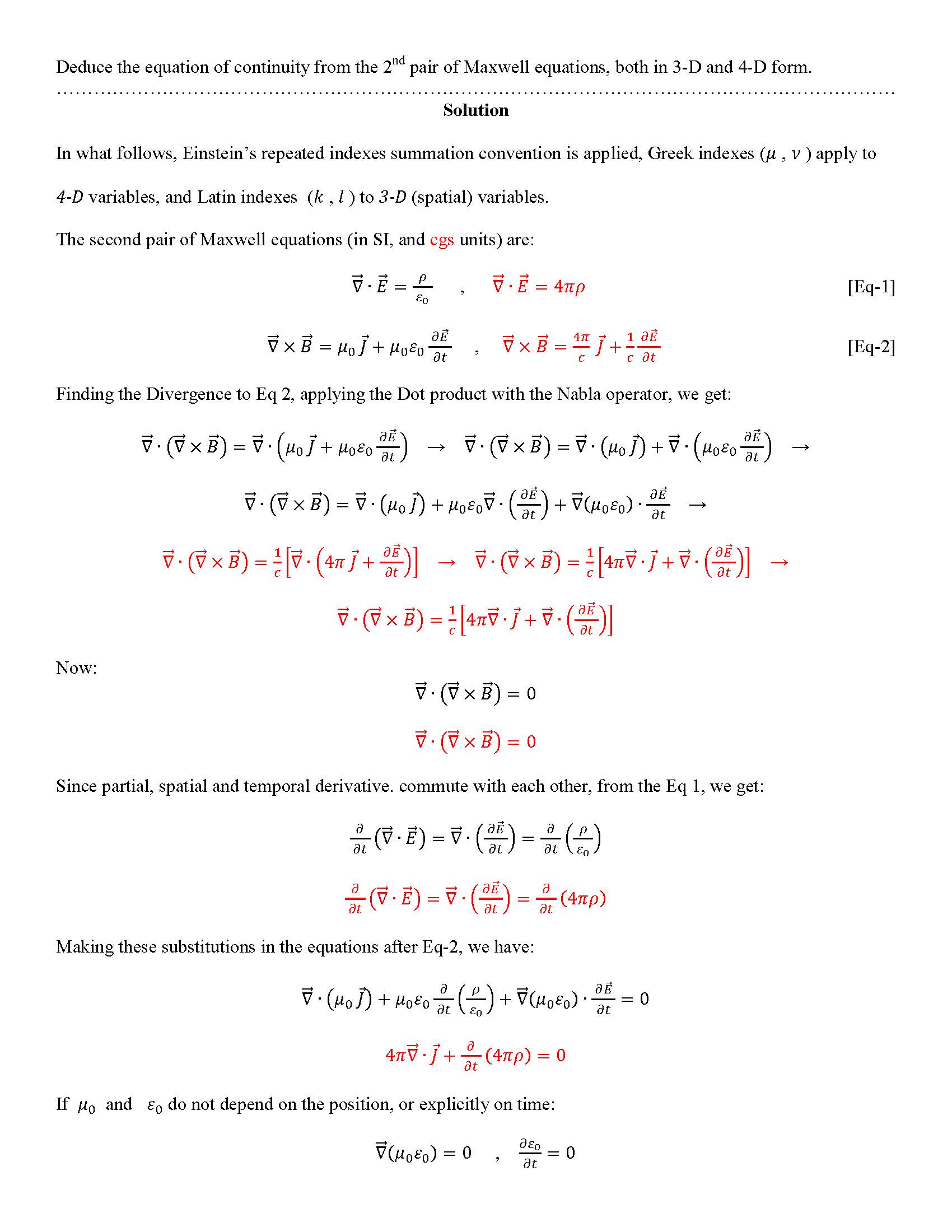 Deduce the equation of continuity from the 2nd pair of Maxwell equa...