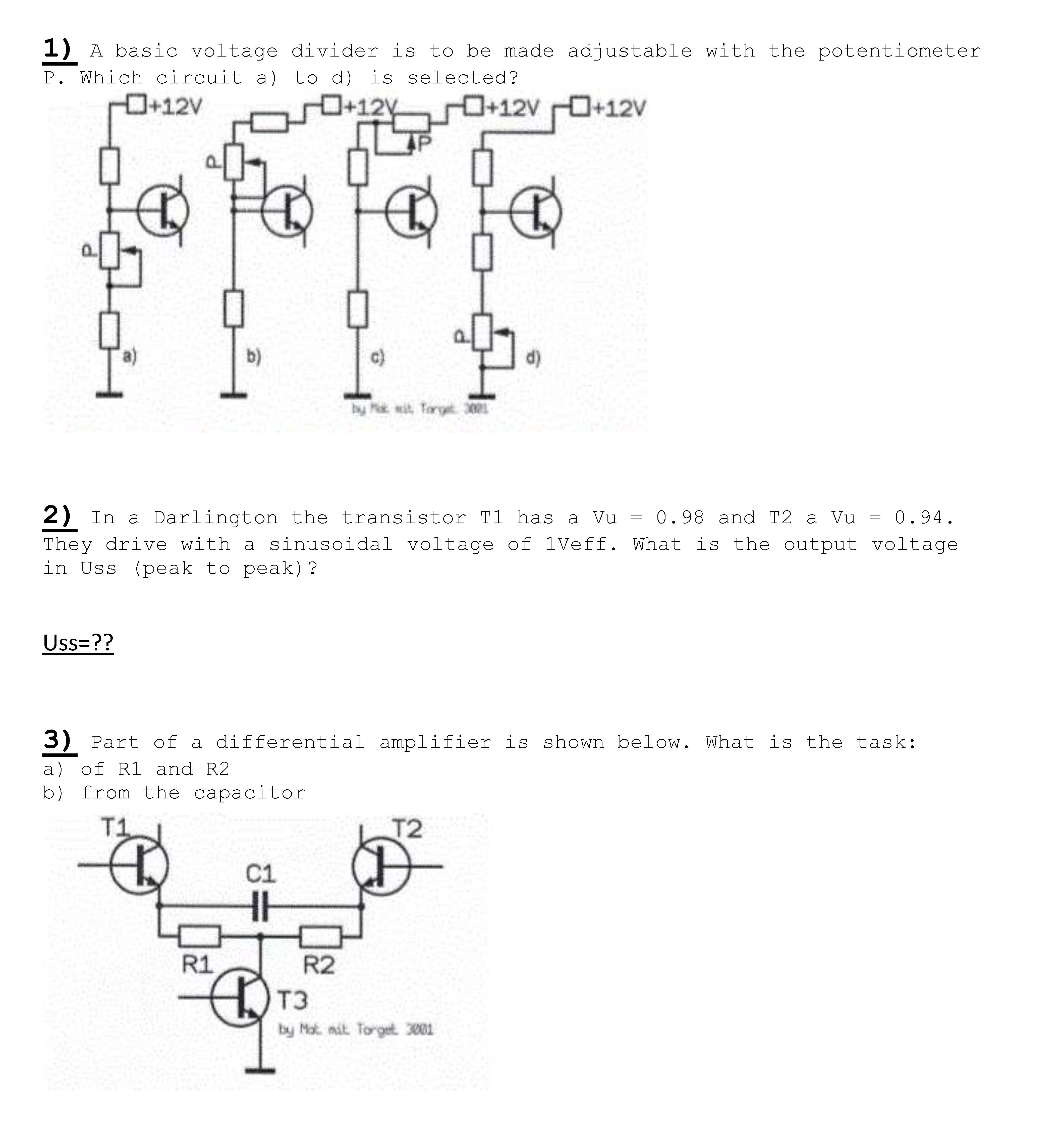 1) A basic voltage divider is to be made adjustable with the potent...