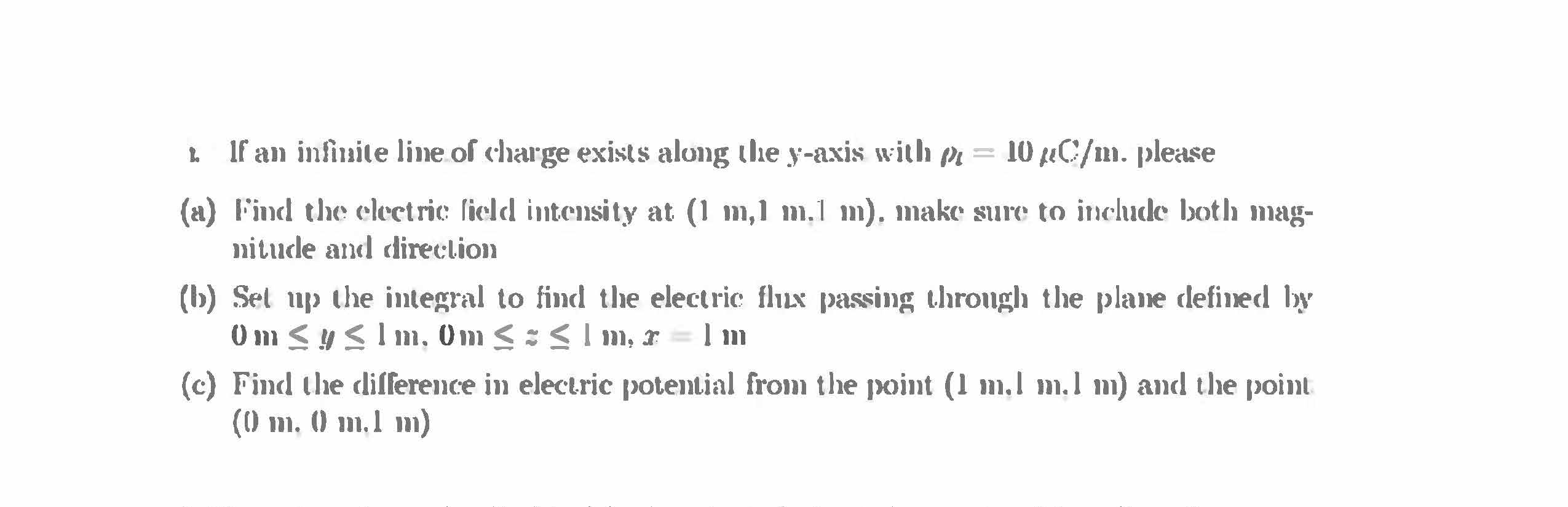 1. If an infiuite line of charge exists along the y-axis with P = 1...