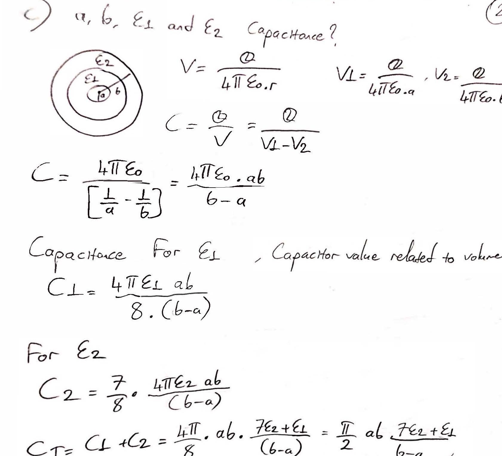The spherical capacitor shown in Figure Q2 is formed by two concent...