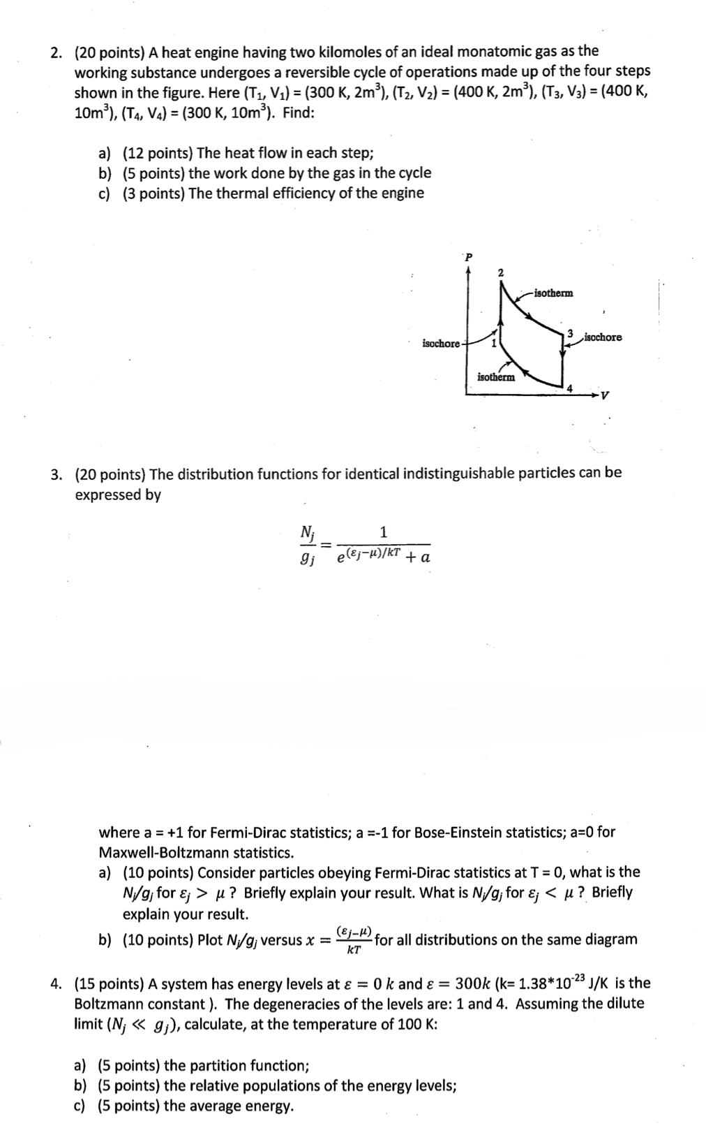 2. (20 points) A heat engine having two kilomoles of an ideal monat...