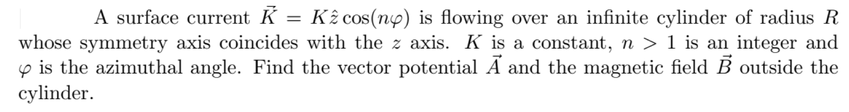 A surface current K = K2 cos(ny) is flowing over an infinite cylind...