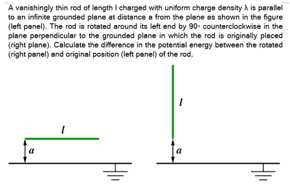 A vanishingly thin rod of length I charged with uniform charge dens...