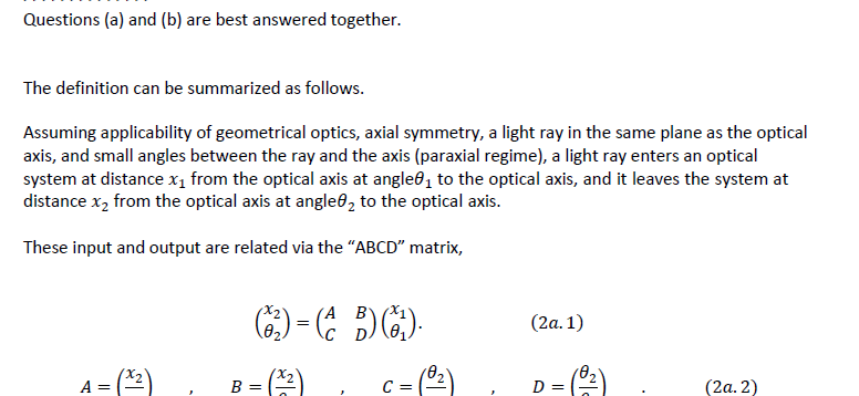 2. (a) Describe how the ABCD transmission matrix connects the initi...