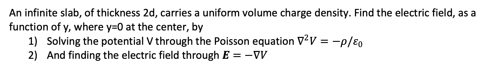 An infinite slab, of thickness 2d, carries a uniform volume charge...