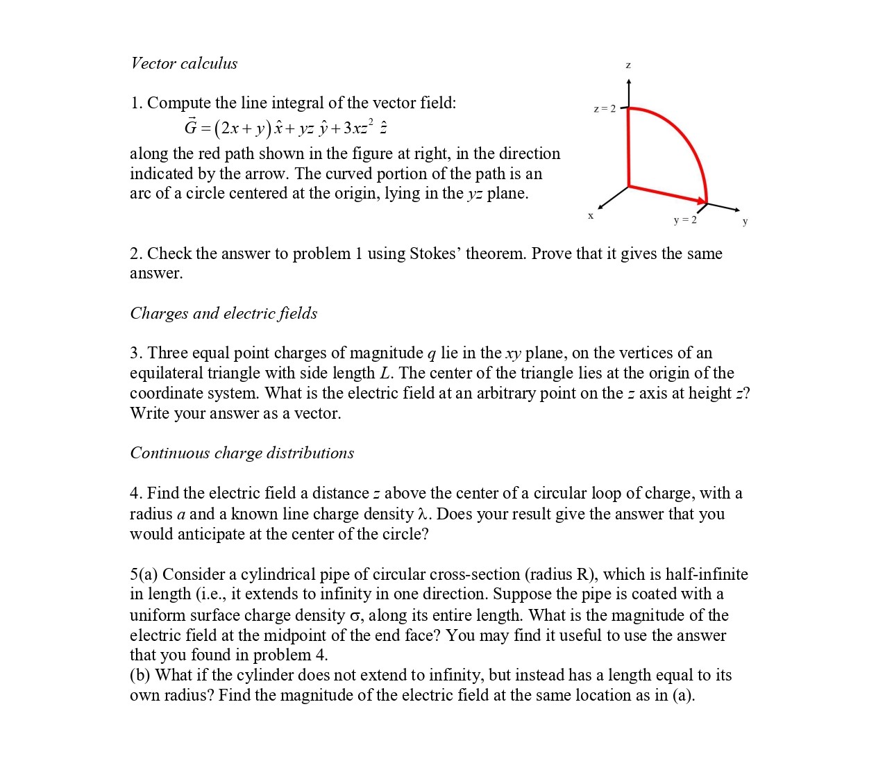 Vector calculus Z 1. Compute the line integral of the vector fiel...