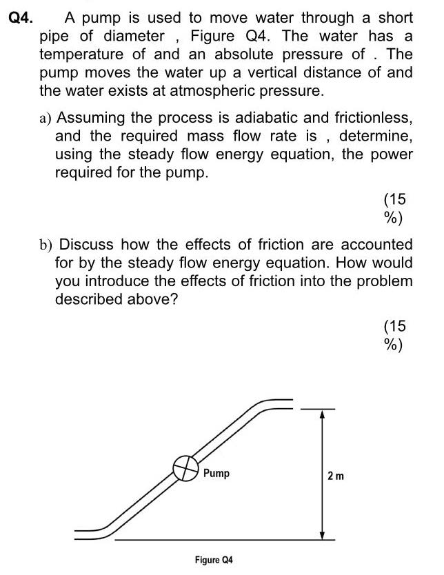 Q4. A pump is used to move water through a short pipe of diameter...
