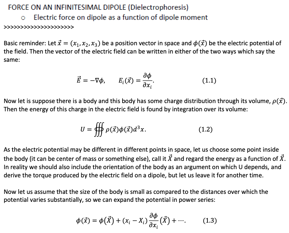 FORCE ON AN INFINITESIMAL DIPOLE (Dielectrophoresis). Electric fo...