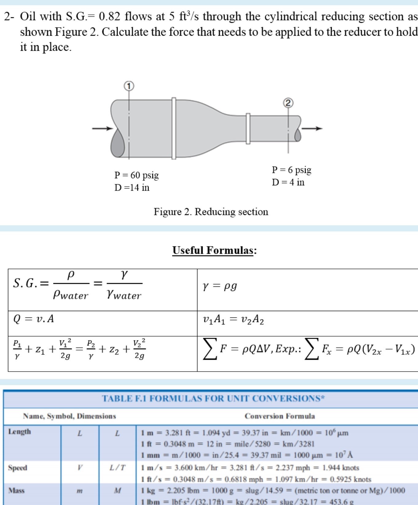 2- Oil with S.G.= = 0.82 flows at 5 ft³/s through the cylindrical...