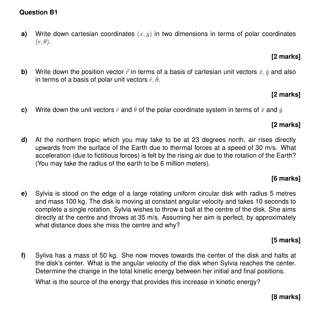 Question B1 a) Write down cartesian coordinates (x,y) in two dime...