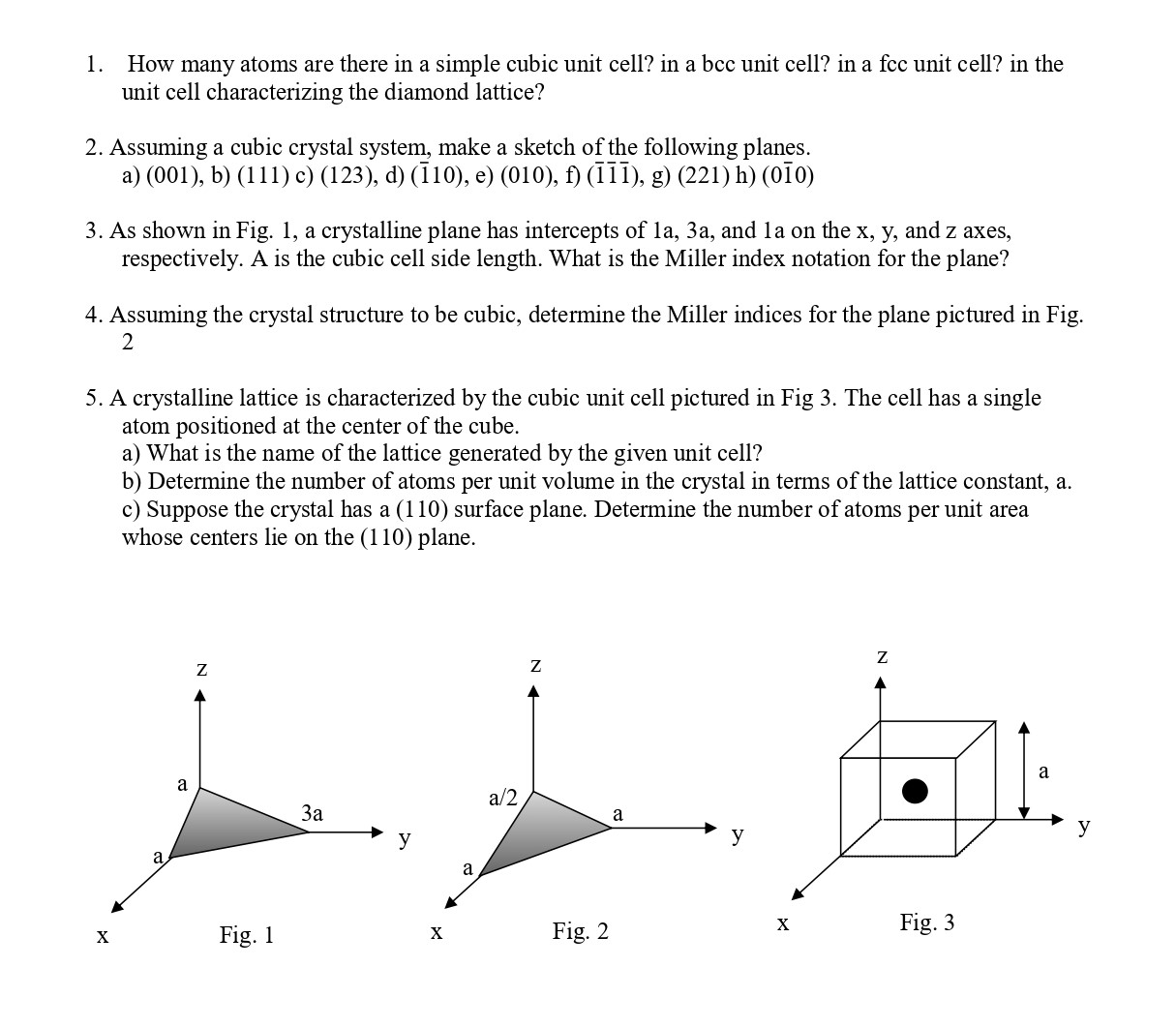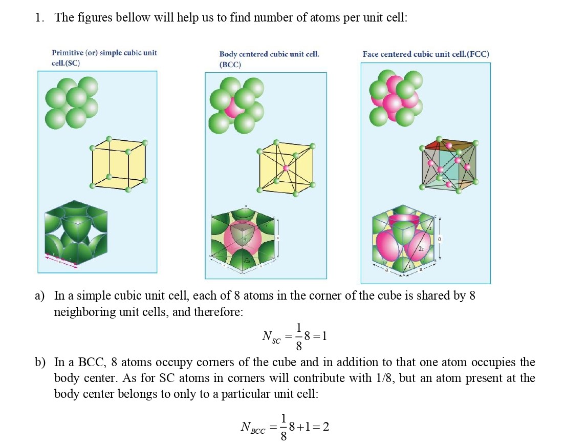 1. How many atoms are there in a simple cubic unit cell? in a bcc u...