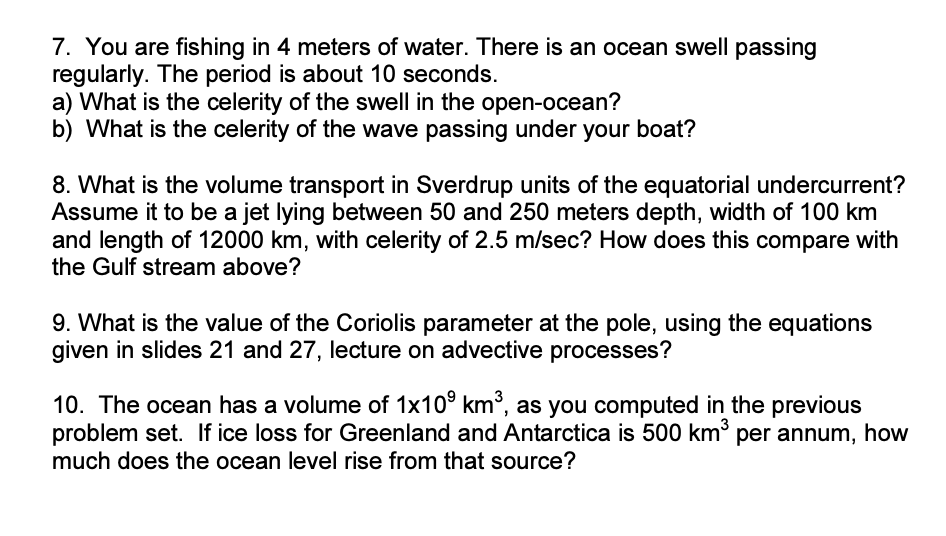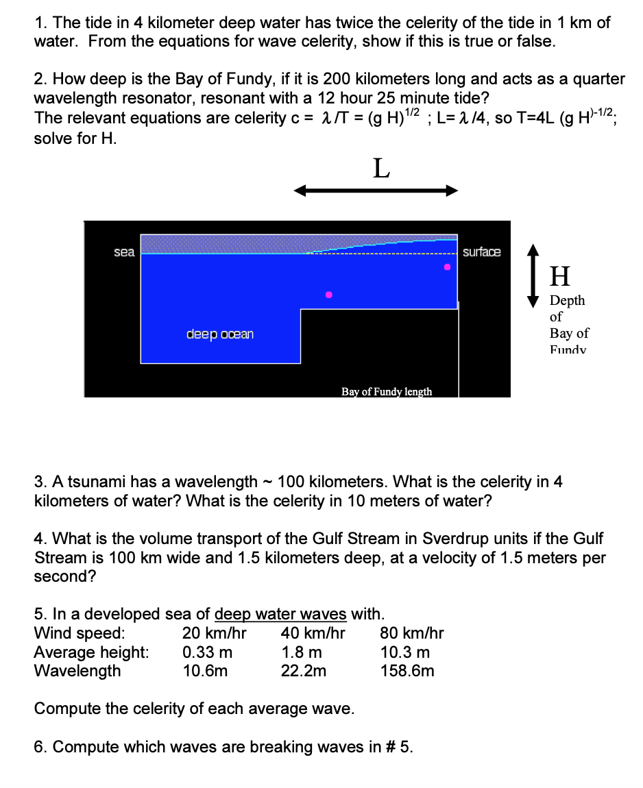 1. The tide in 4 kilometer deep water has twice the celerity of the...