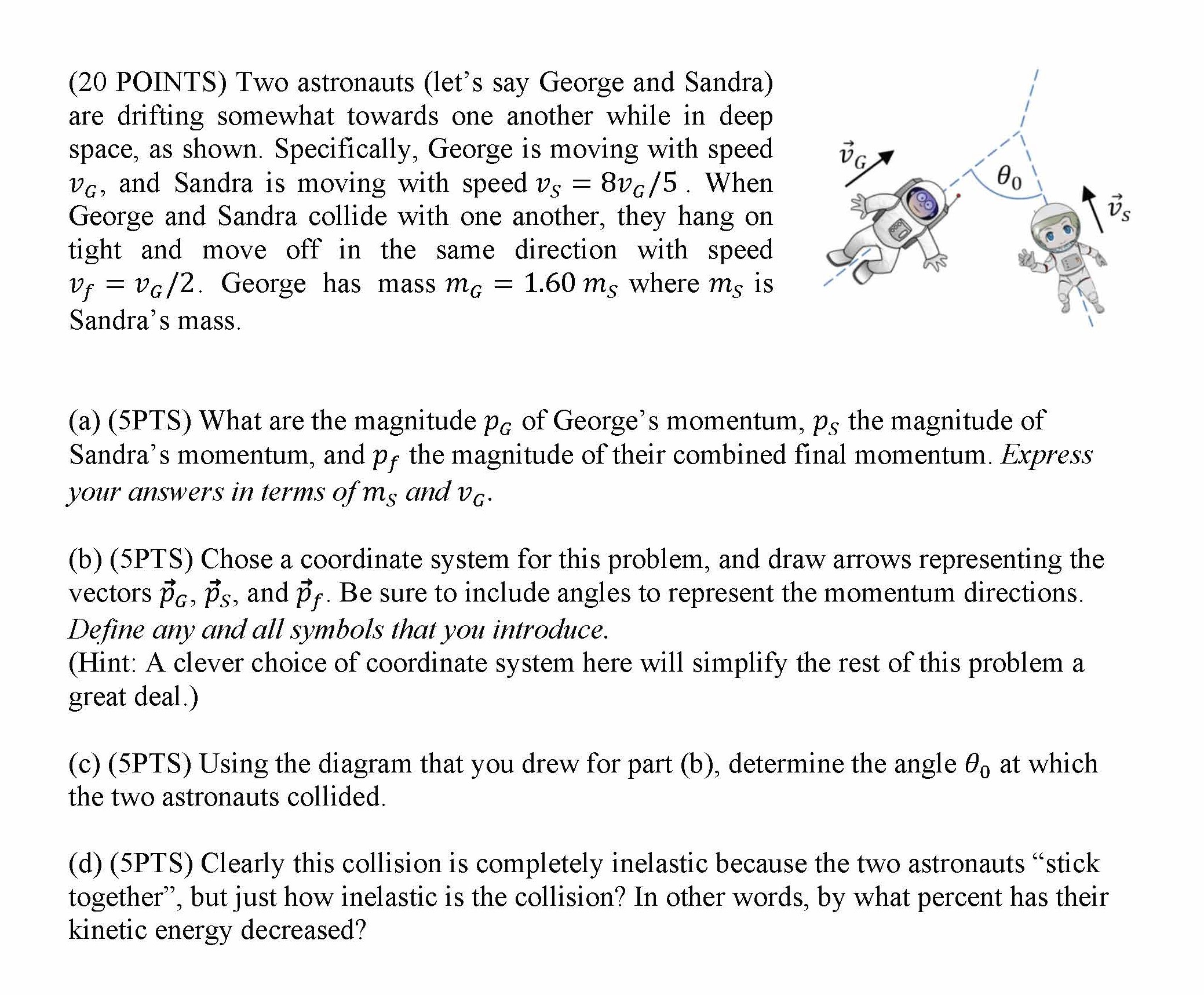 (20 POINTS) Two astronauts (let's say George and Sandra) are drift...