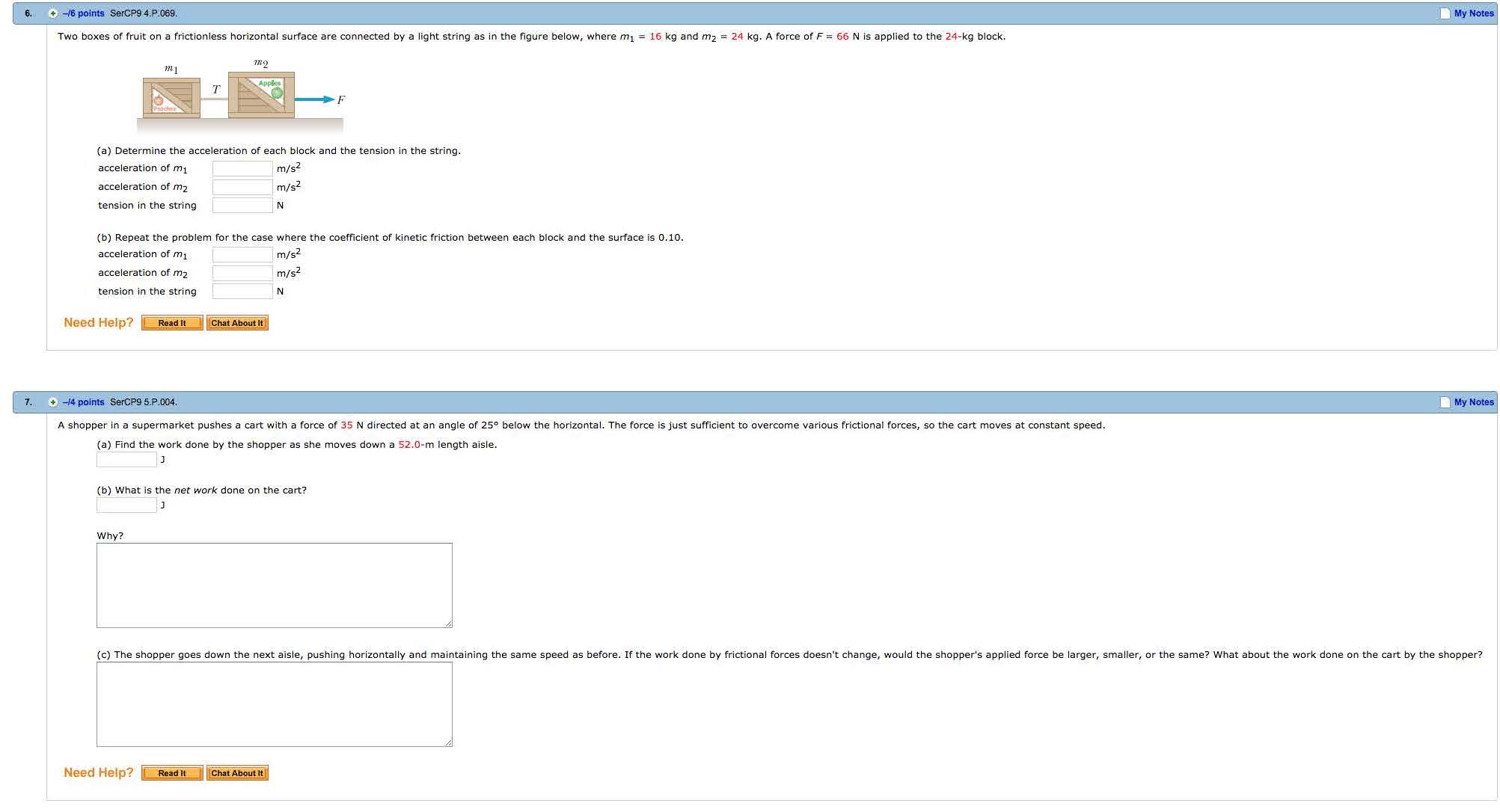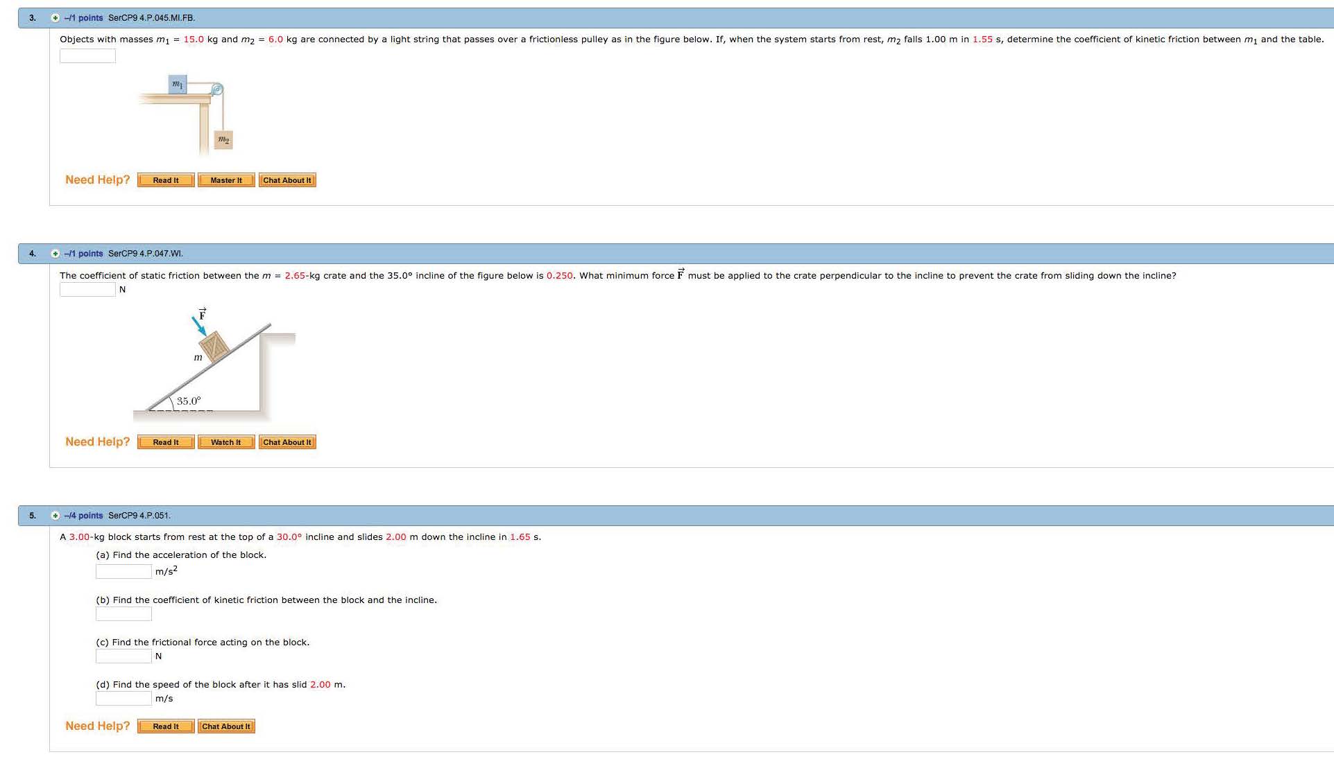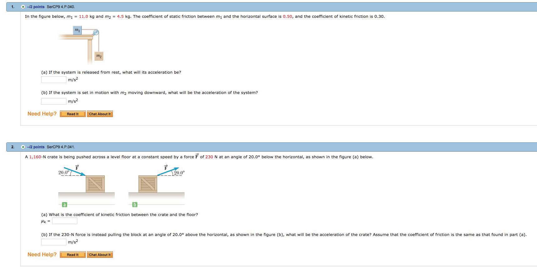 1. -12 points SerCP9 4.P.040. In the figure below, m1 = 11.0 kg a...