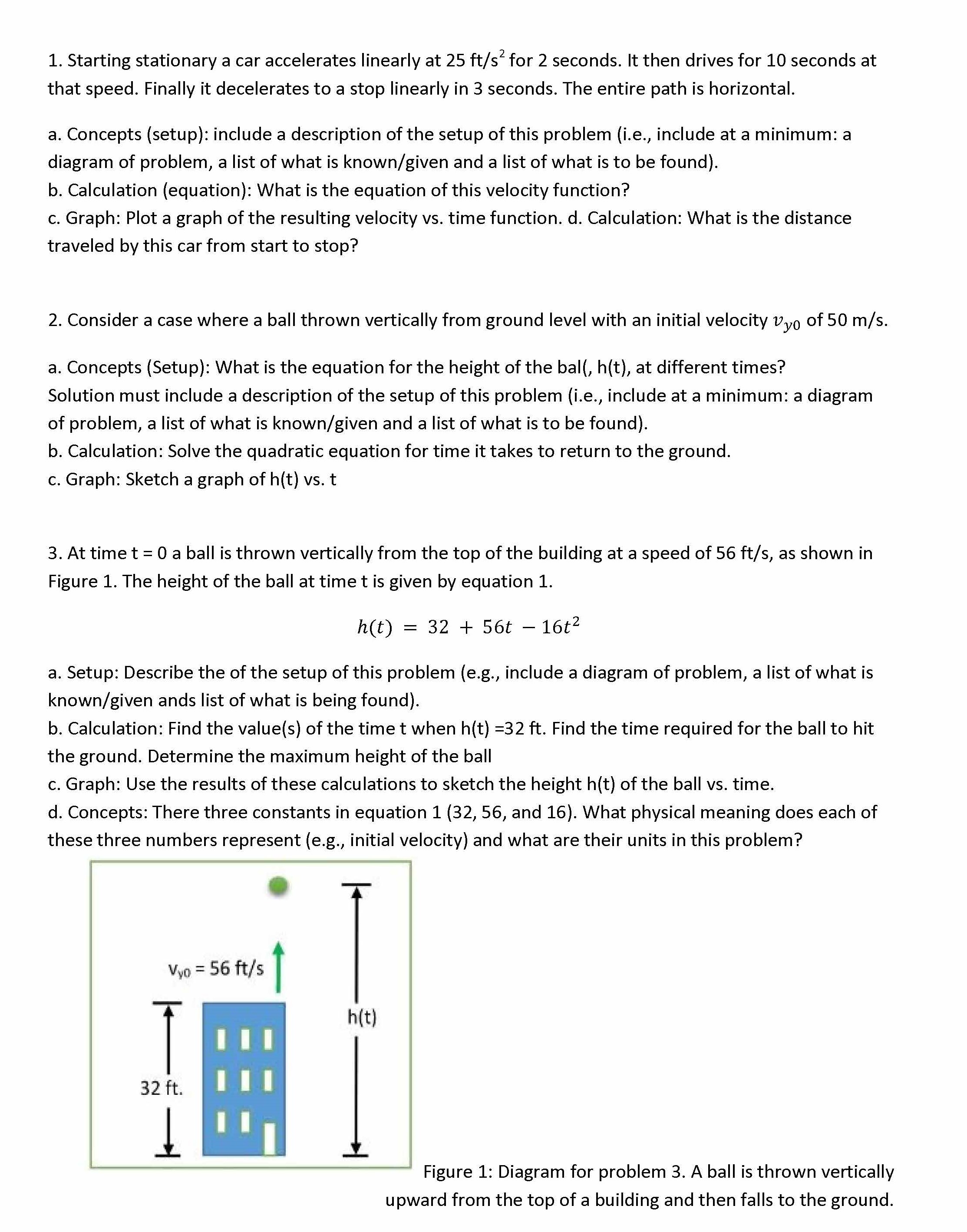 1. Starting stationary a car accelerates linearly at 25 ft/s2 for 2...