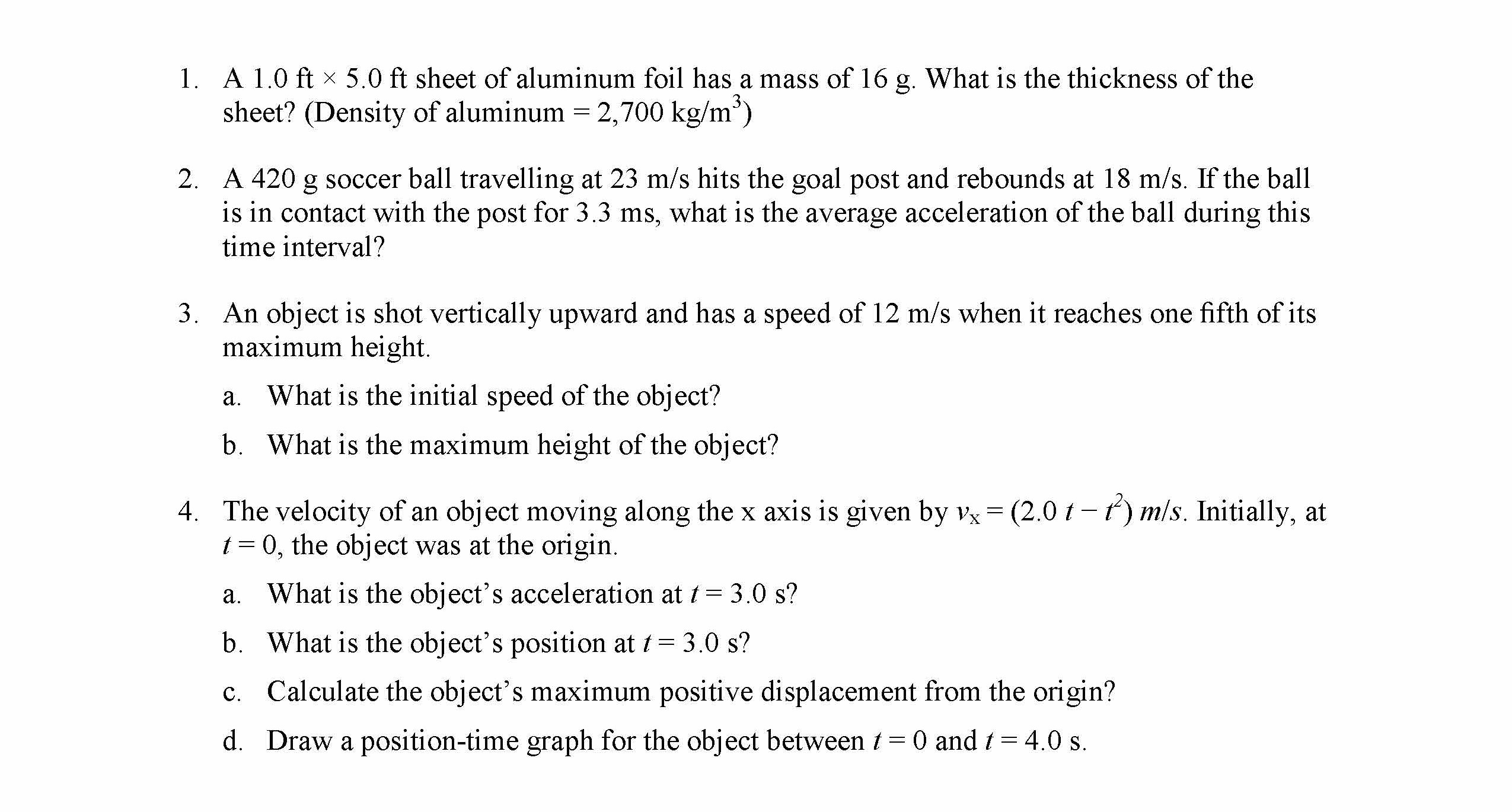1. A 1.0 ft × 5.0 ft sheet of aluminum foil has a mass of 16 g....