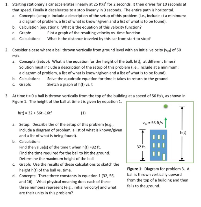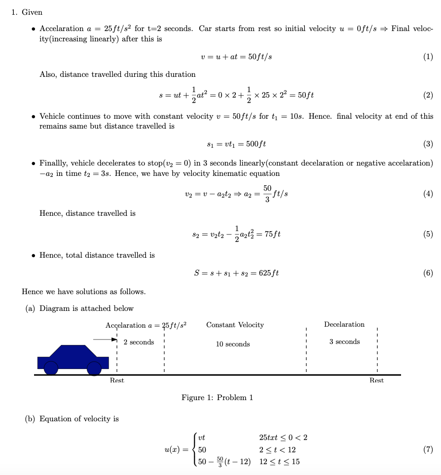 1. Starting stationary a car accelerates linearly at 25 ft/s2 for 2...