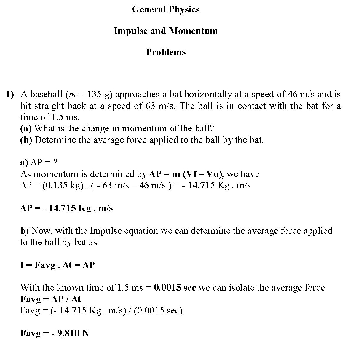 General Physics Impulse and Momentum Problems 1) A baseball (m =...