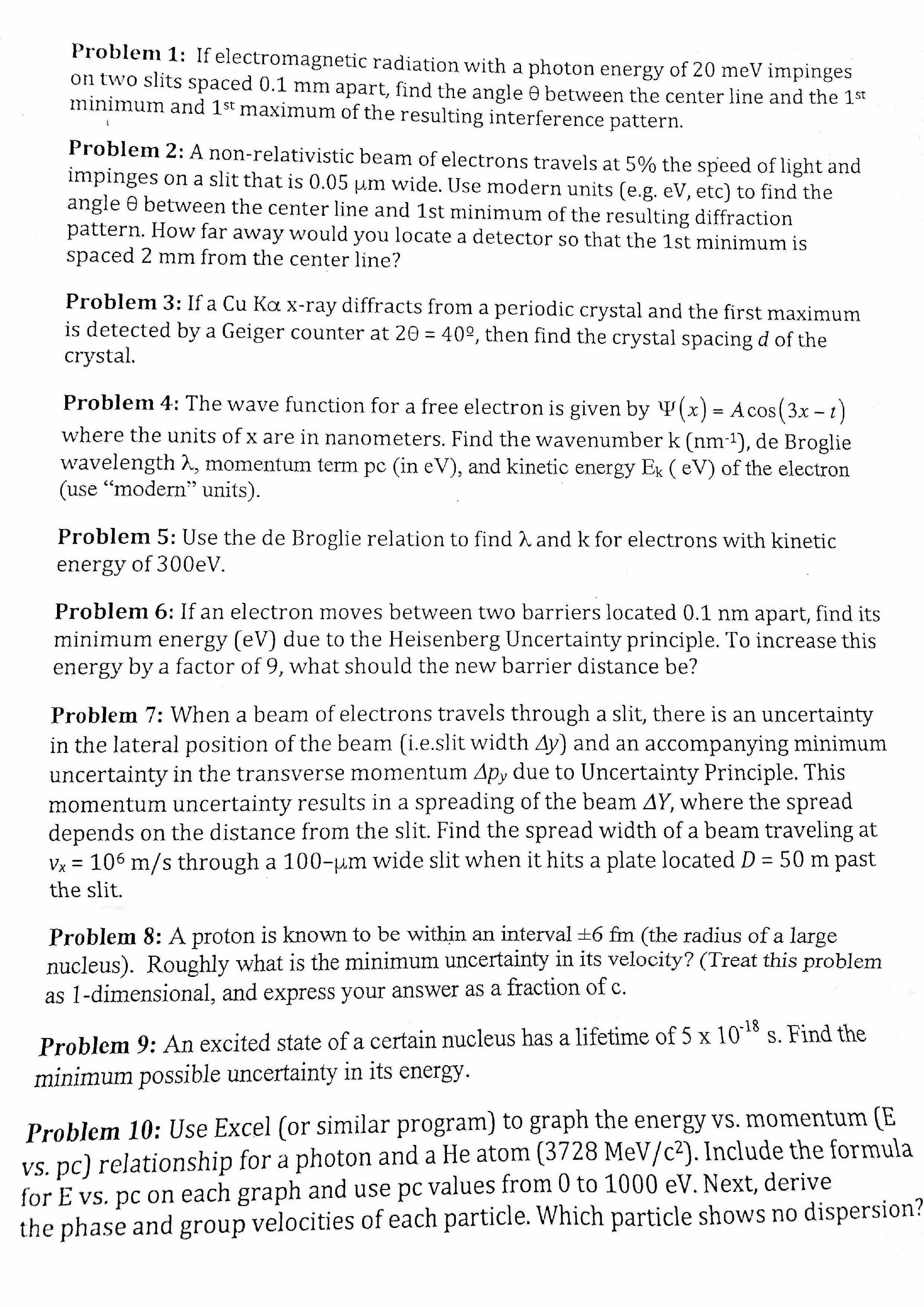 Problem 1: If electromagnetic radiation with a photon energy of 20 ...