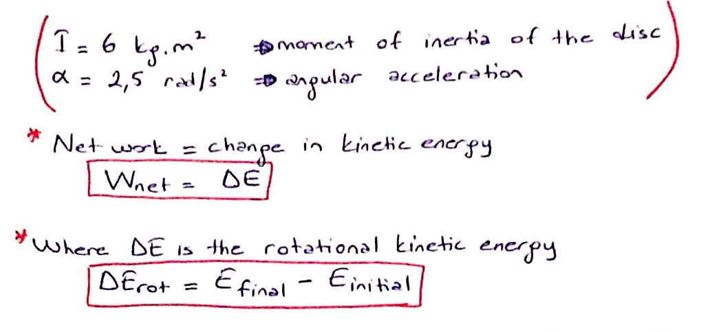 A disk has rotational inertia of 6.0 kg•m2 and a constant angular...