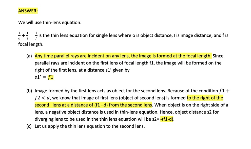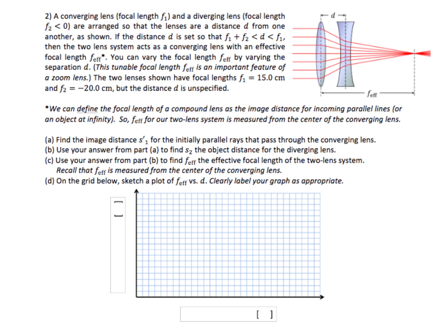 2) A converging lens (focal length fi) and a diverging lens (focal...
