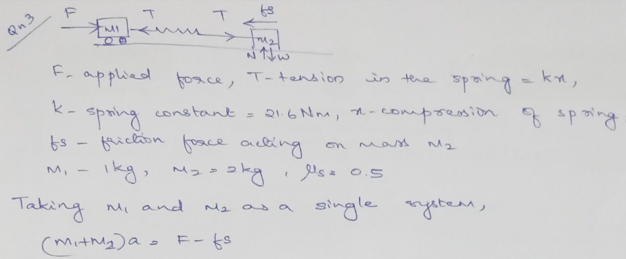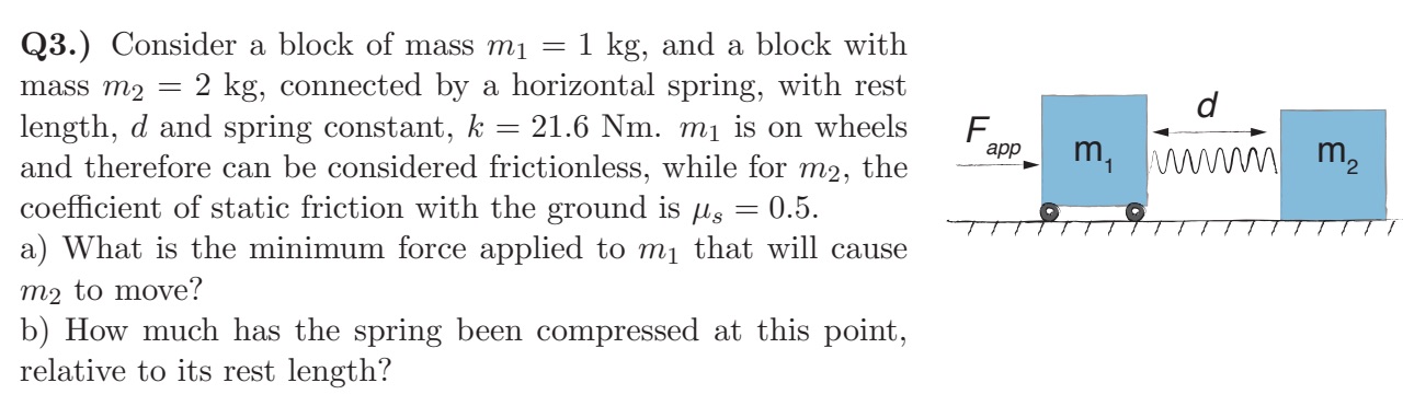 Q3.) Consider a block of mass M1 = 1 kg, and a block with mass M2 ...