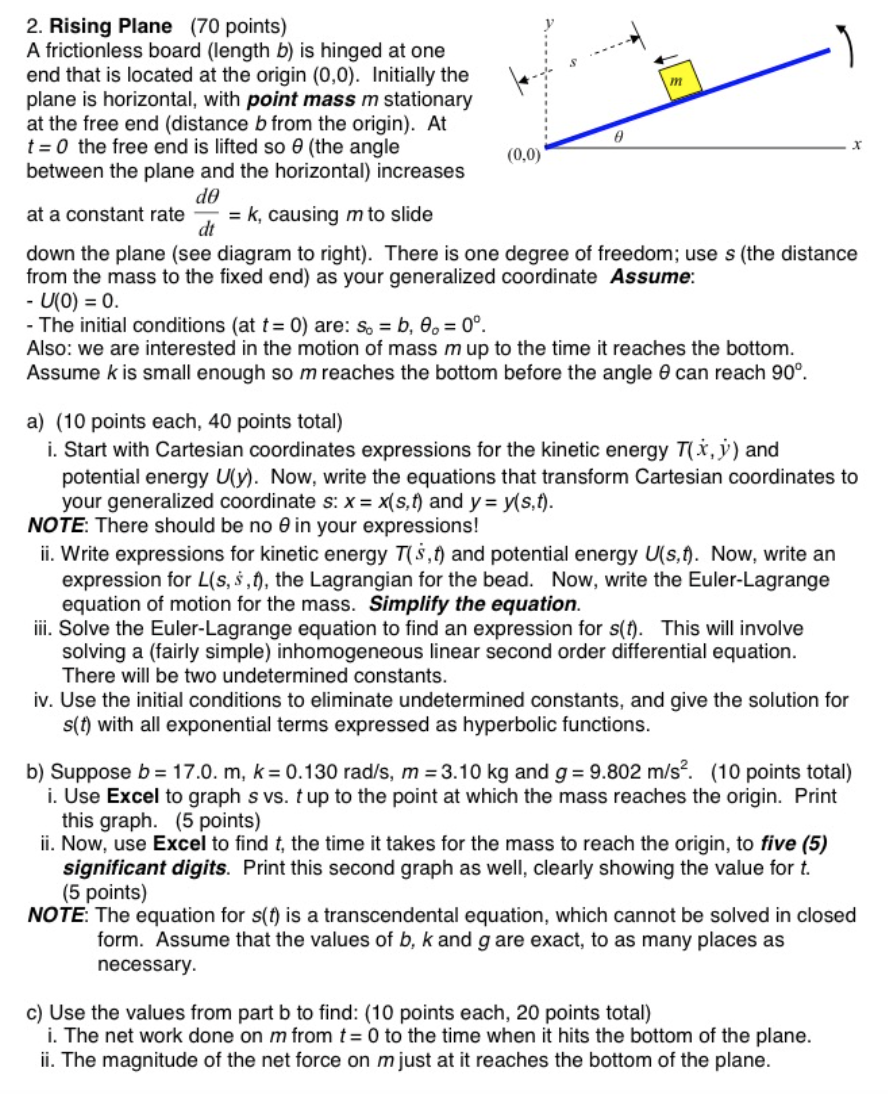 2. Rising Plane (70 points) A frictionless board (length b) is hin...