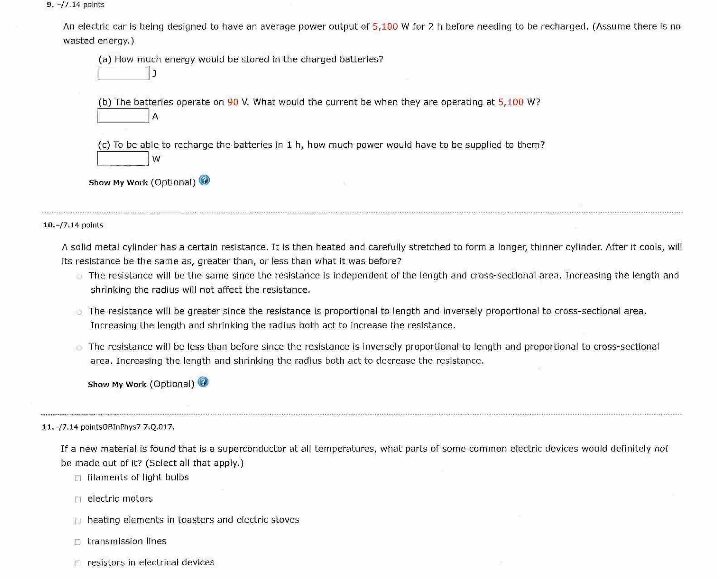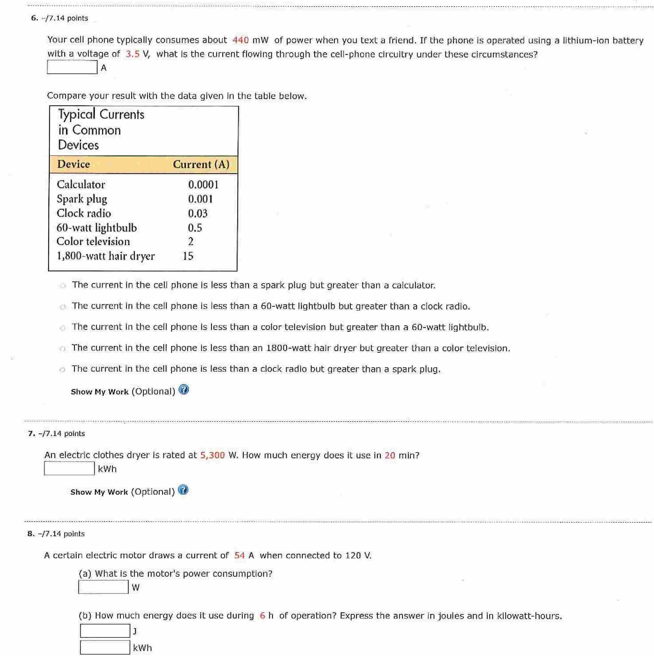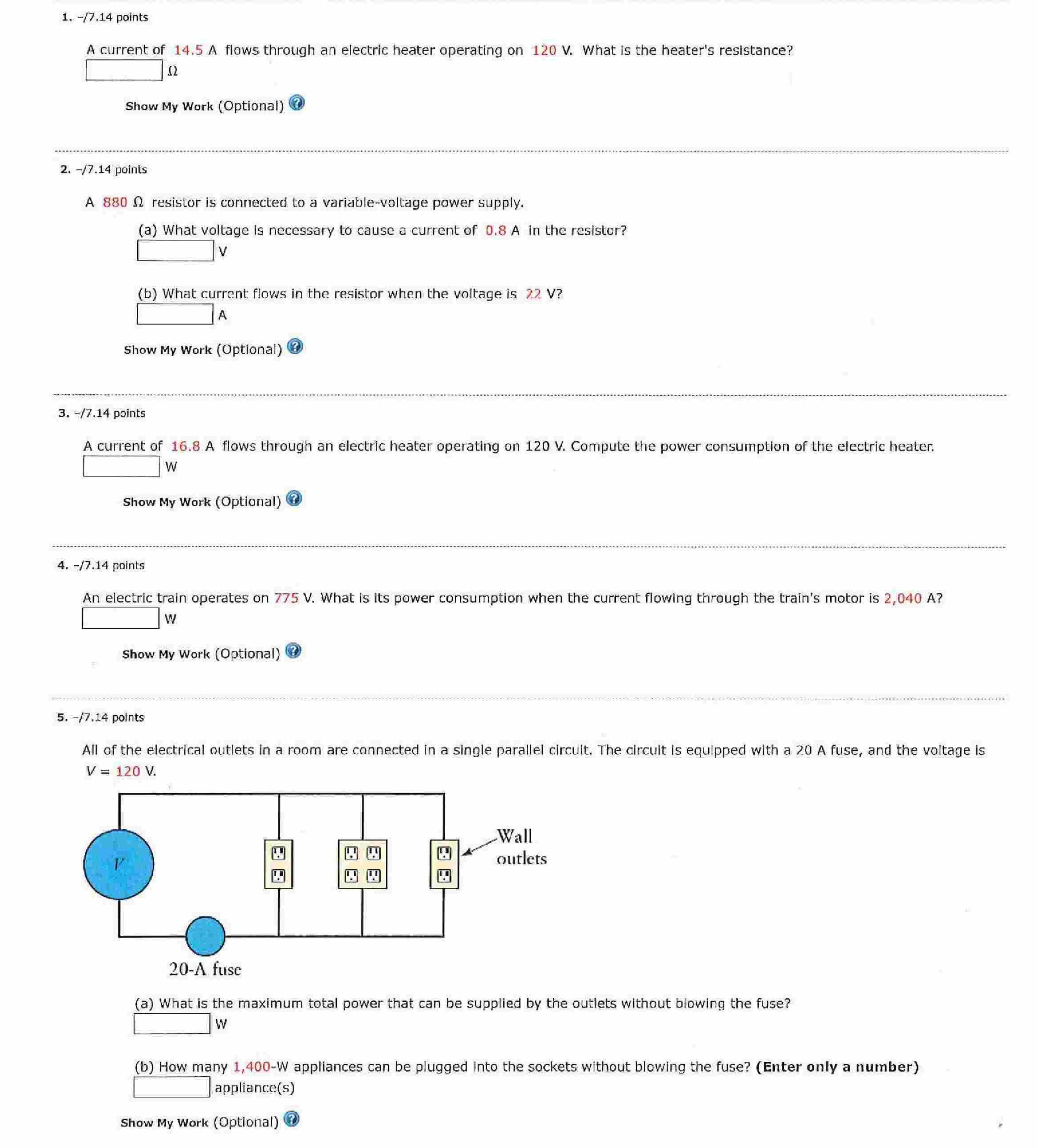 1. -17.14 points A current of 14.5 A flows through an electric hea...