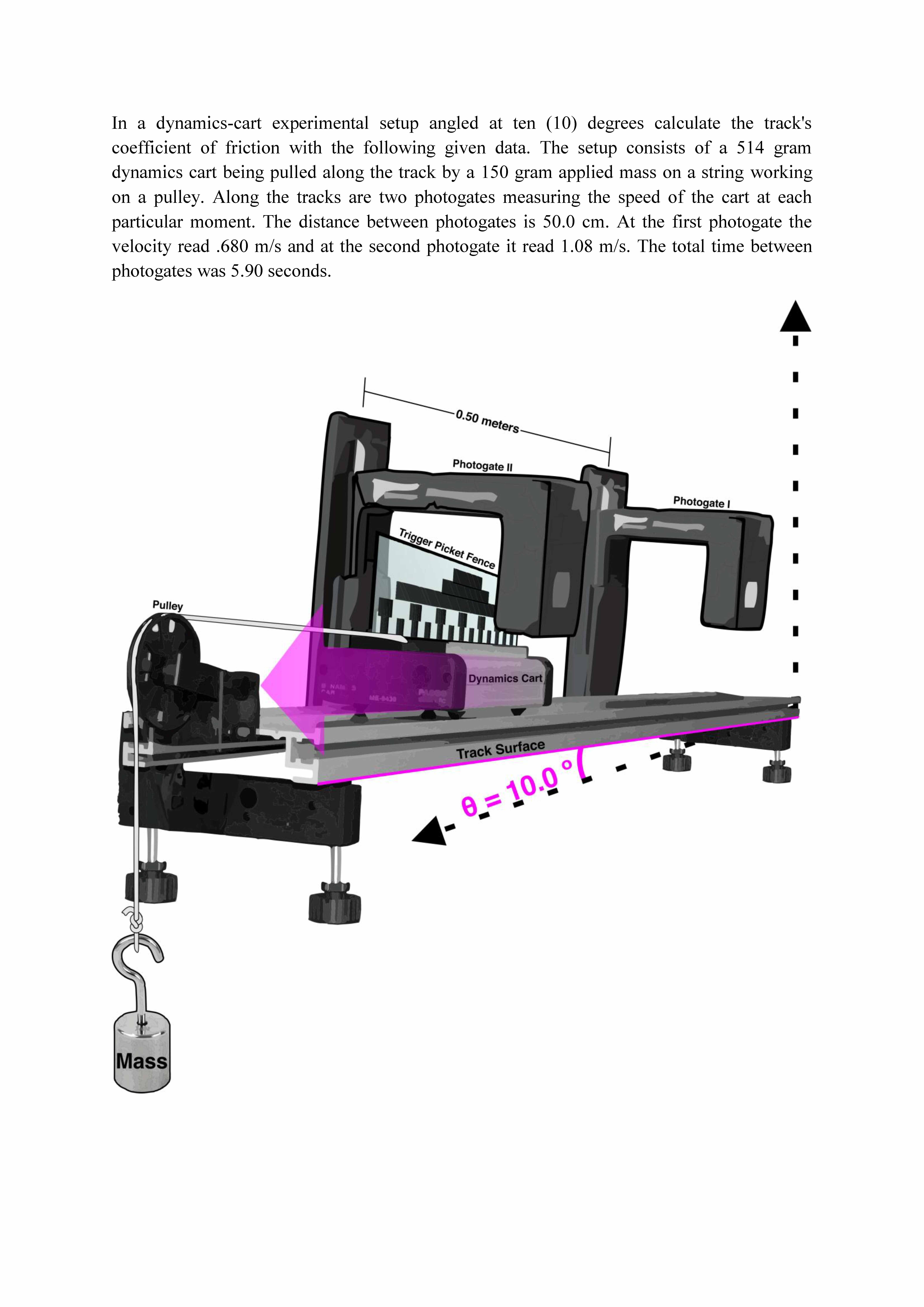In a dynamics-cart experimental setup angled at ten (10) degrees ca...