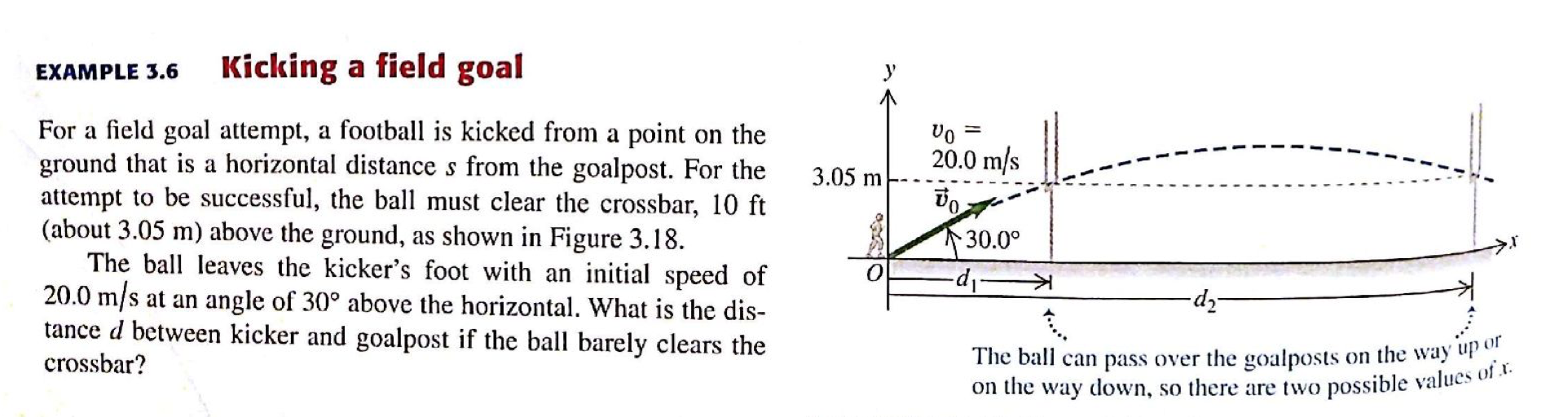 Kicking a field goal y EXAMPLE 3.6 For a field goal attempt, a f...