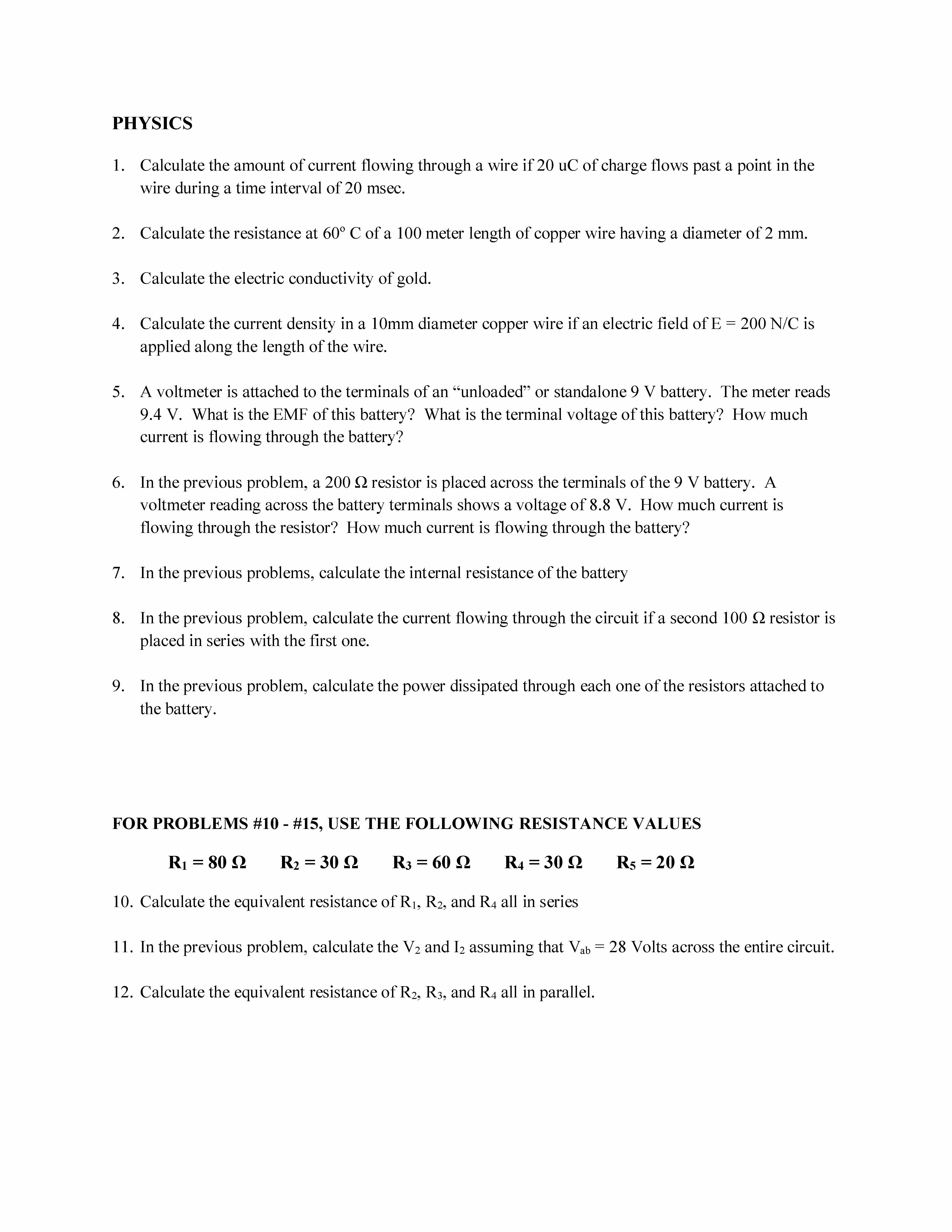 PHYSICS 1. Calculate the amount of current flowing through a wire...