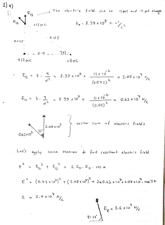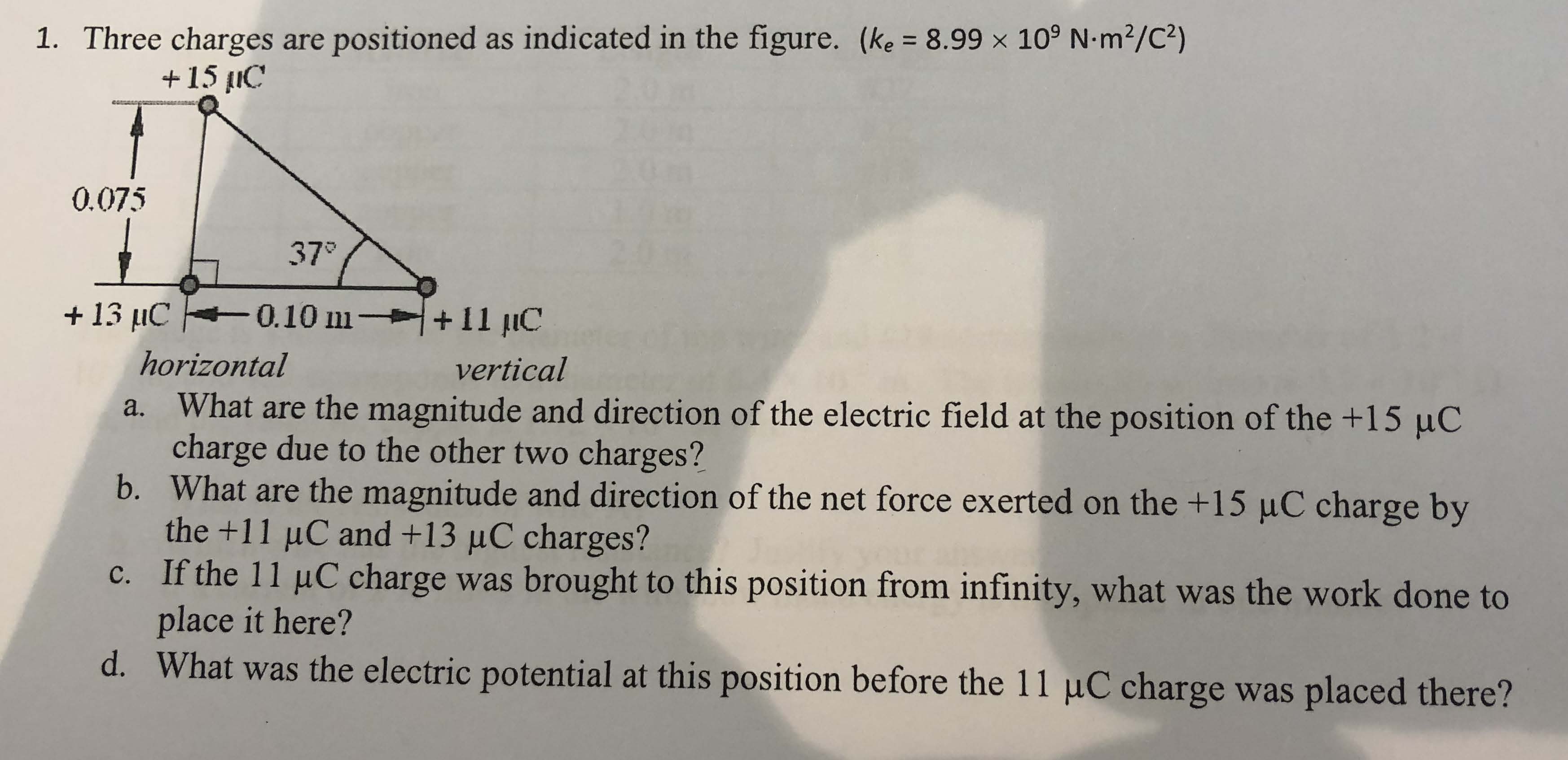 1. Three charges are positioned as indicated in the figure. (ke = 8...