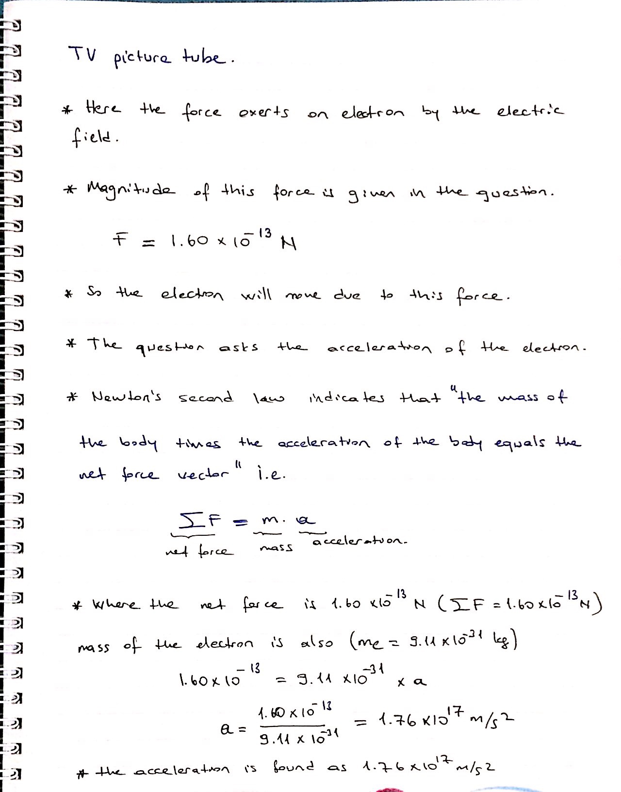 In a color TV picture tube, an electric field exerts a net force wi...