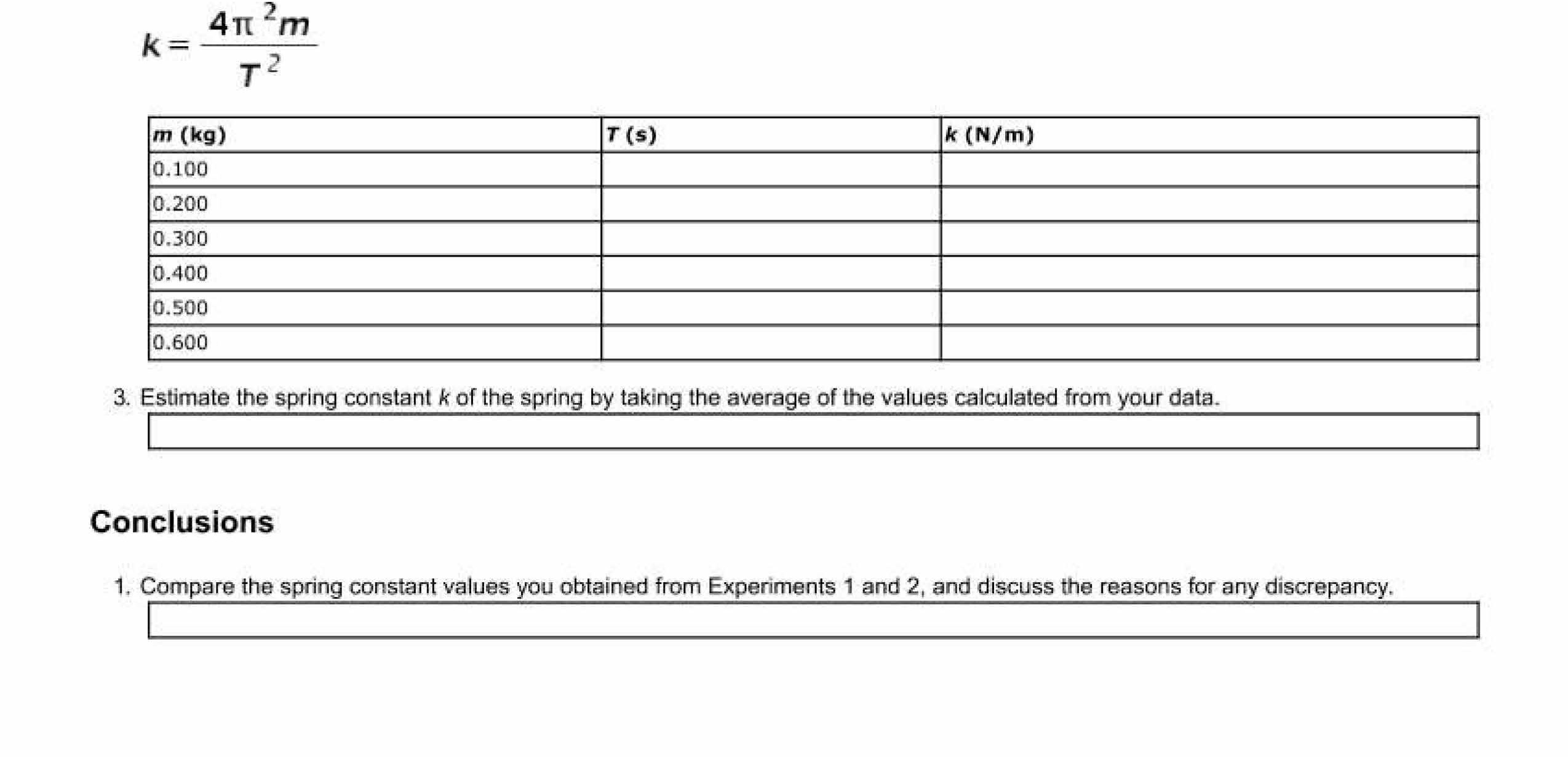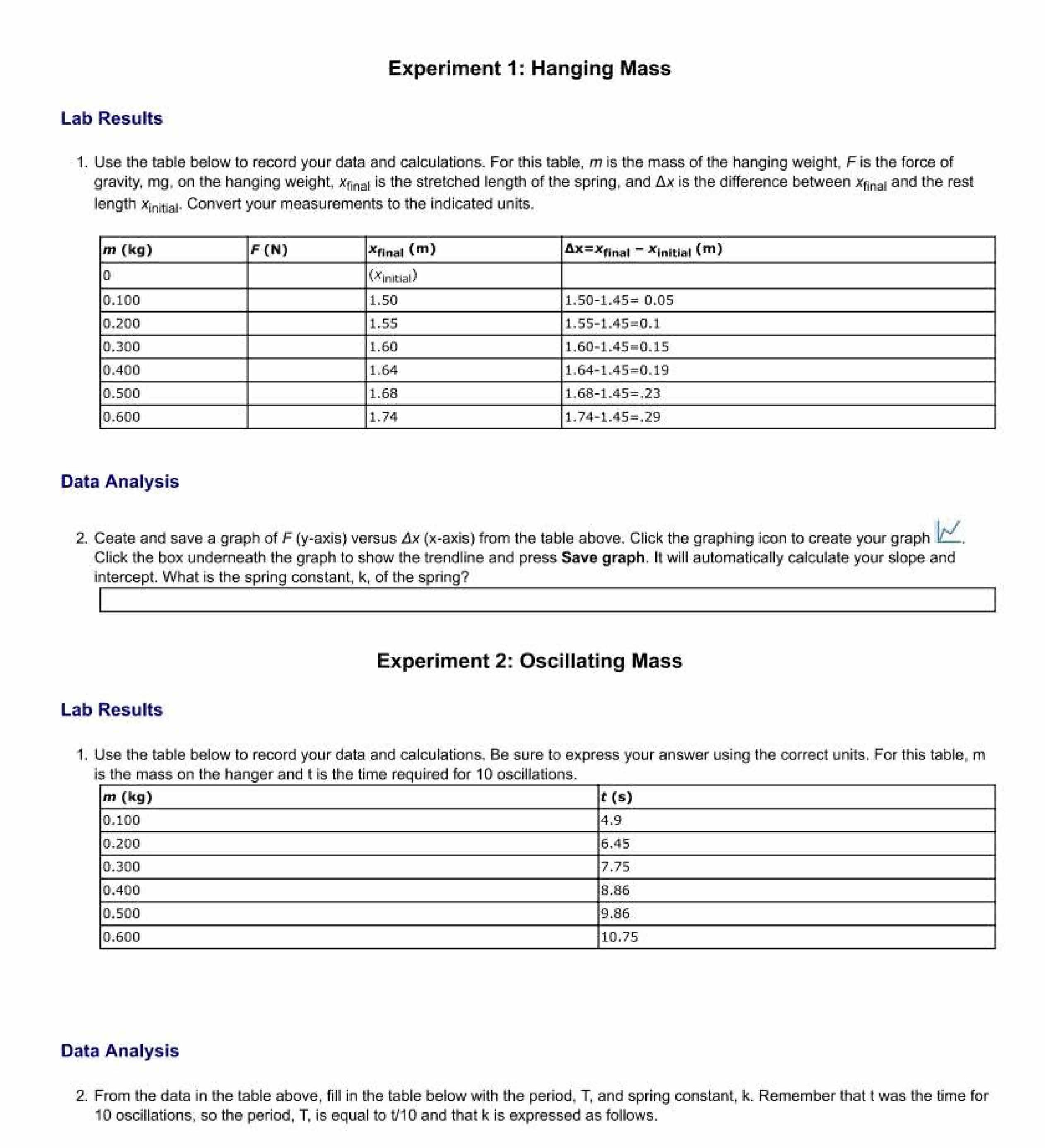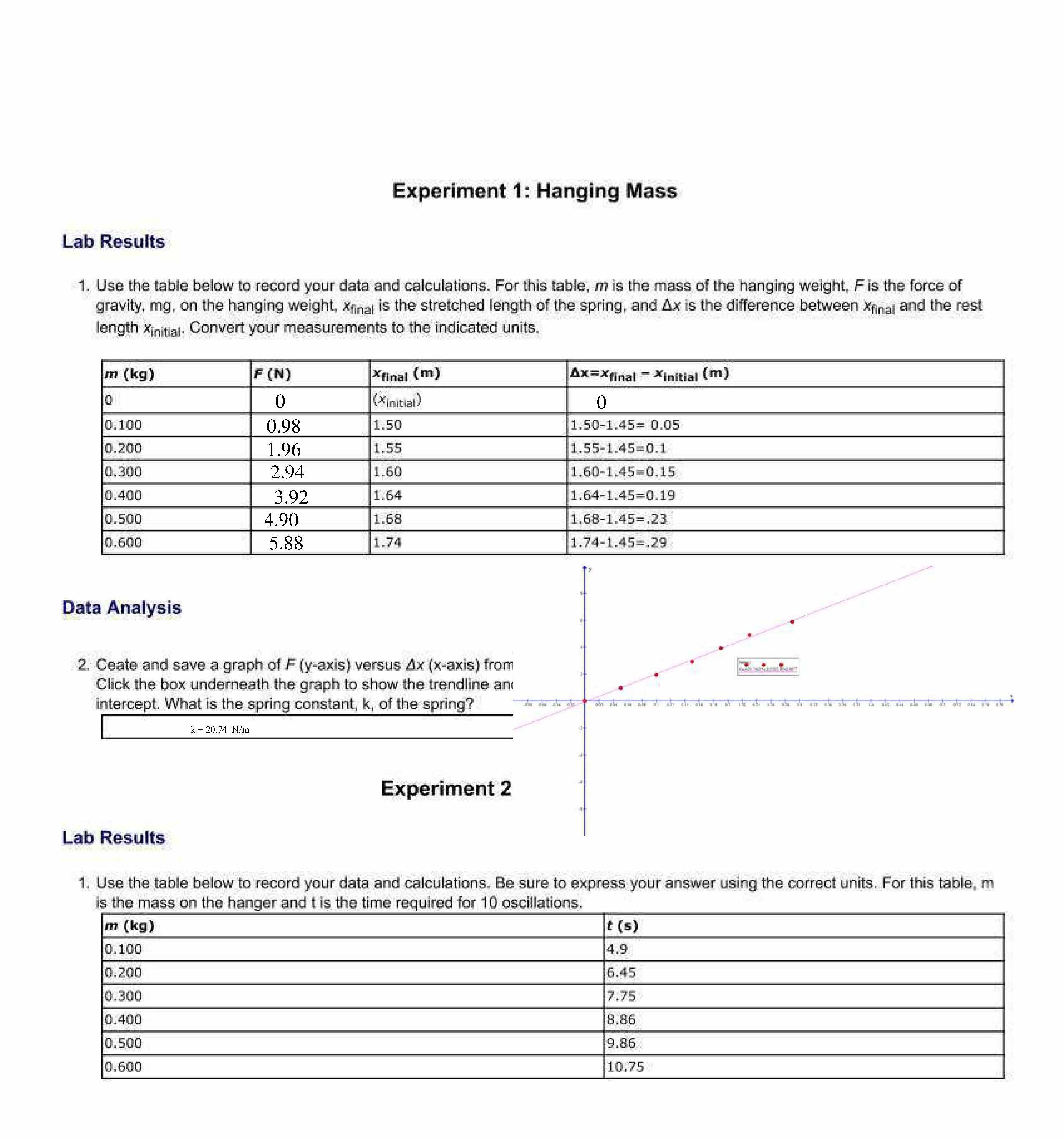 Experiment 1: Hanging Mass Lab Results 1. Use the table below...