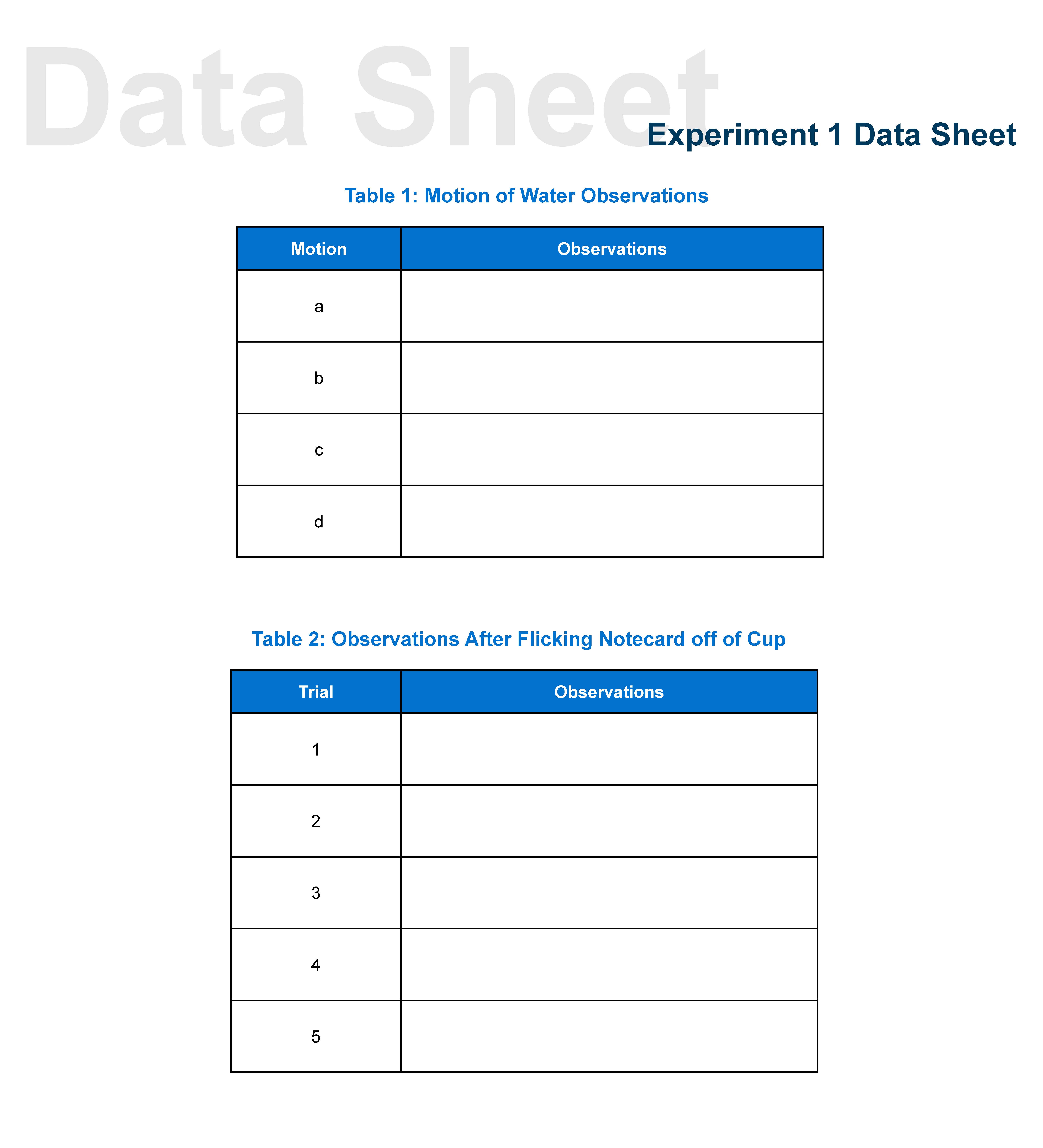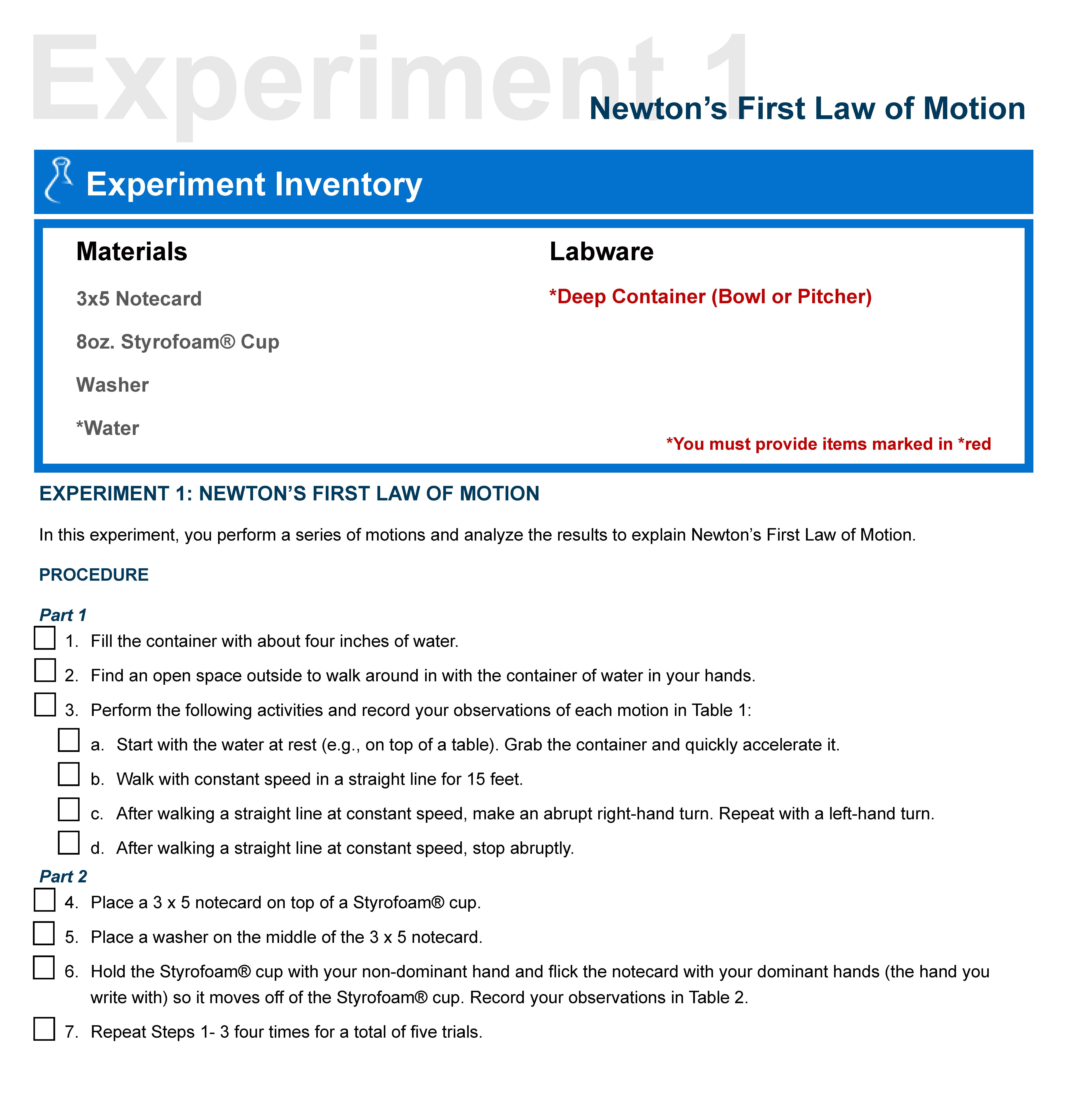 ExperimenNetwton1’s First Law of Motion Experiment Inventory...