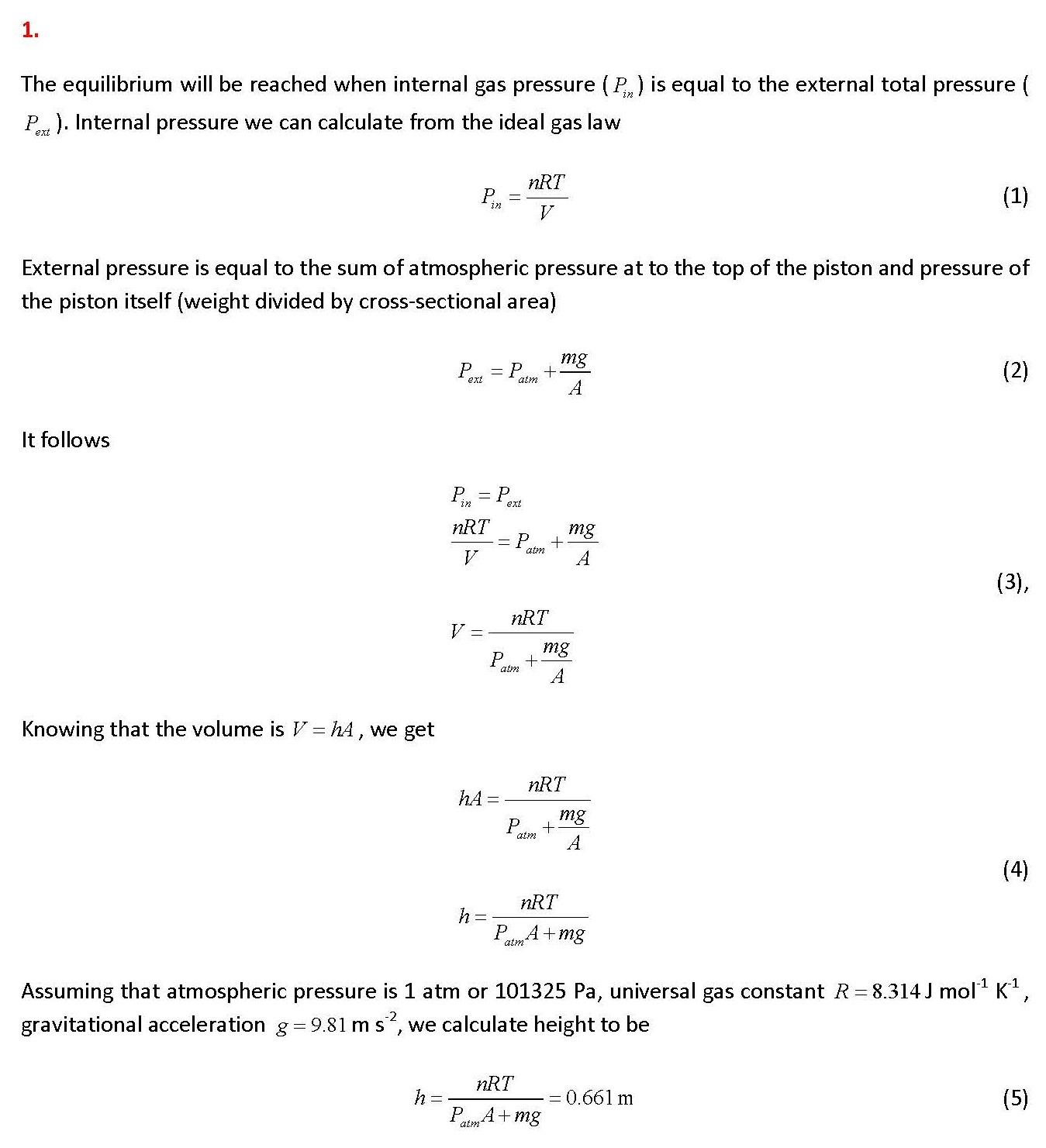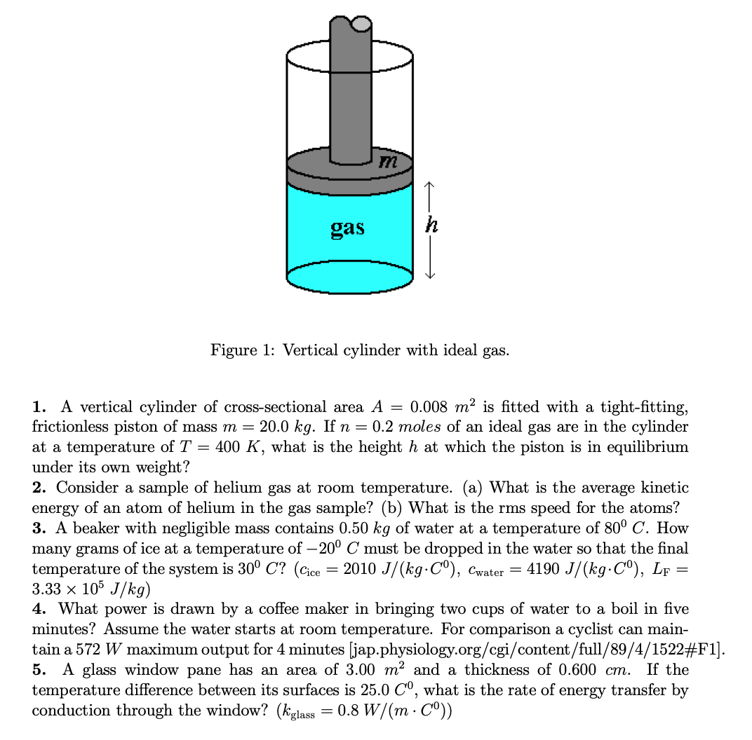 Figure 1: Vertical cylinder with ideal gas. 1. A vertical cylinder...