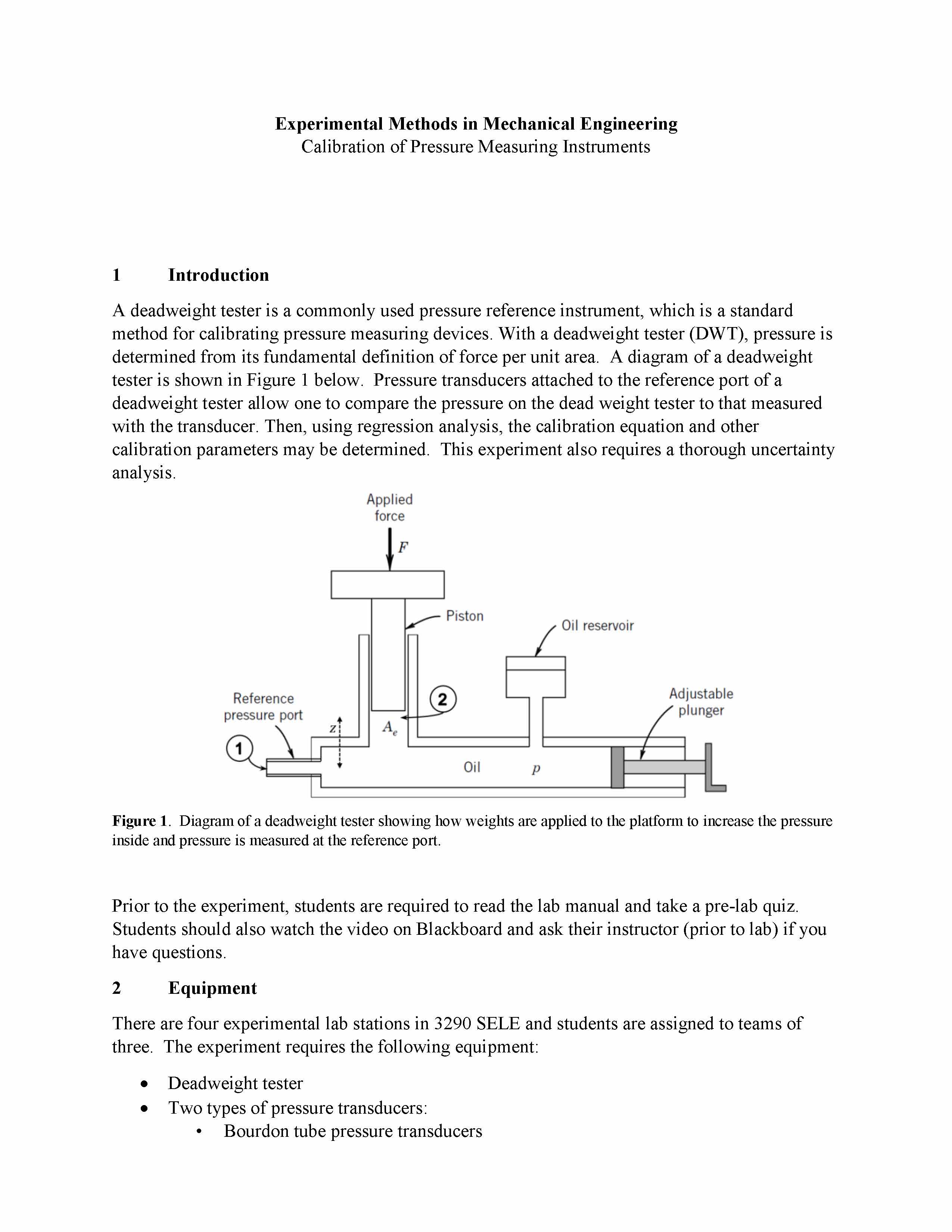 Experimental Methods in Mechanical Engineering Calibration of Pres...