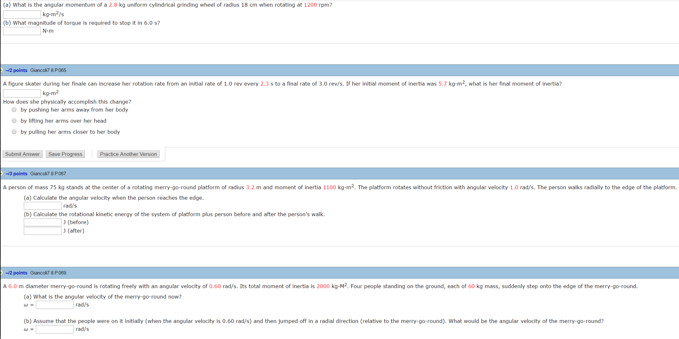 (a) What is the angular momentum of a 2.8 kg uniform cylindrical gr...