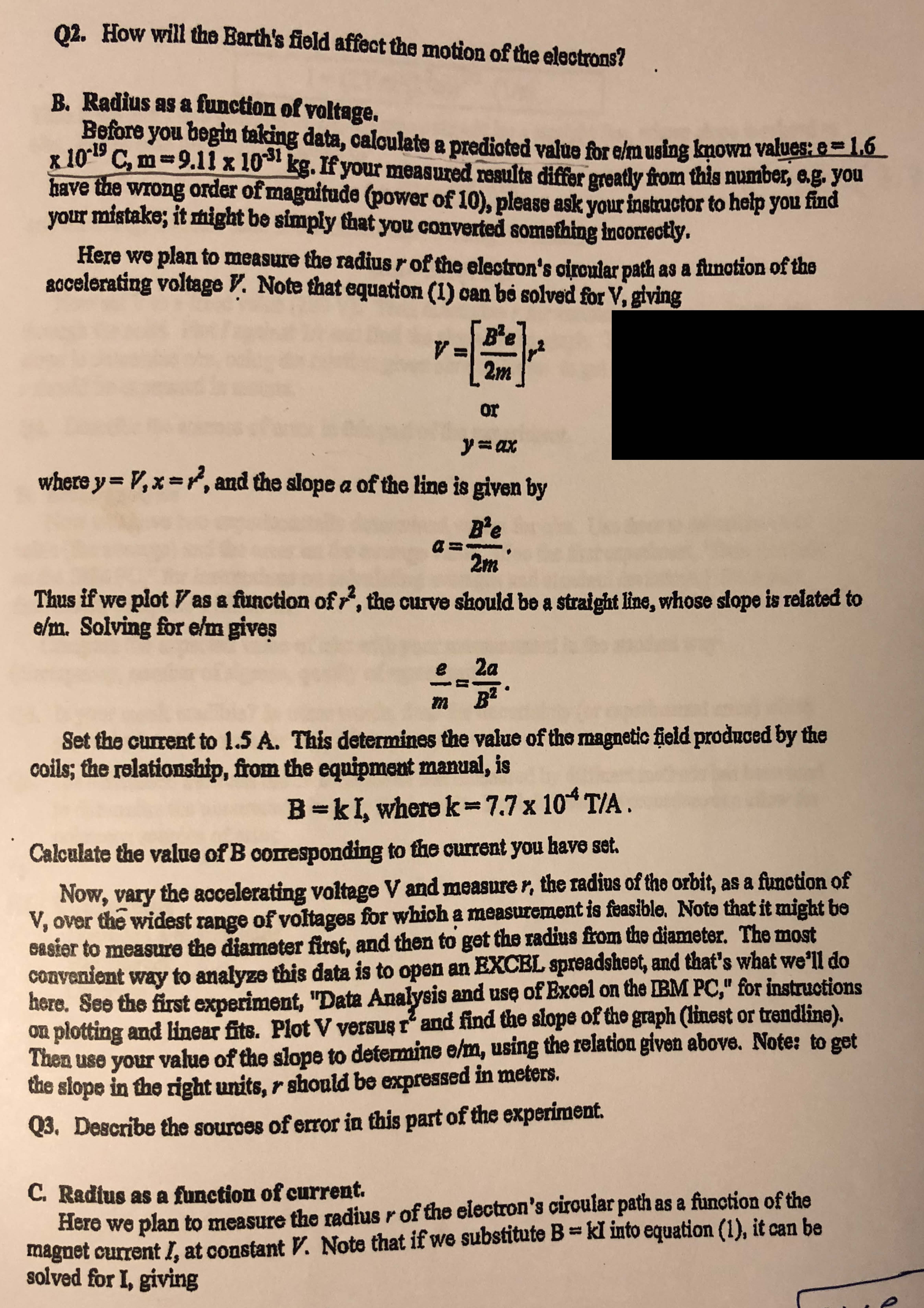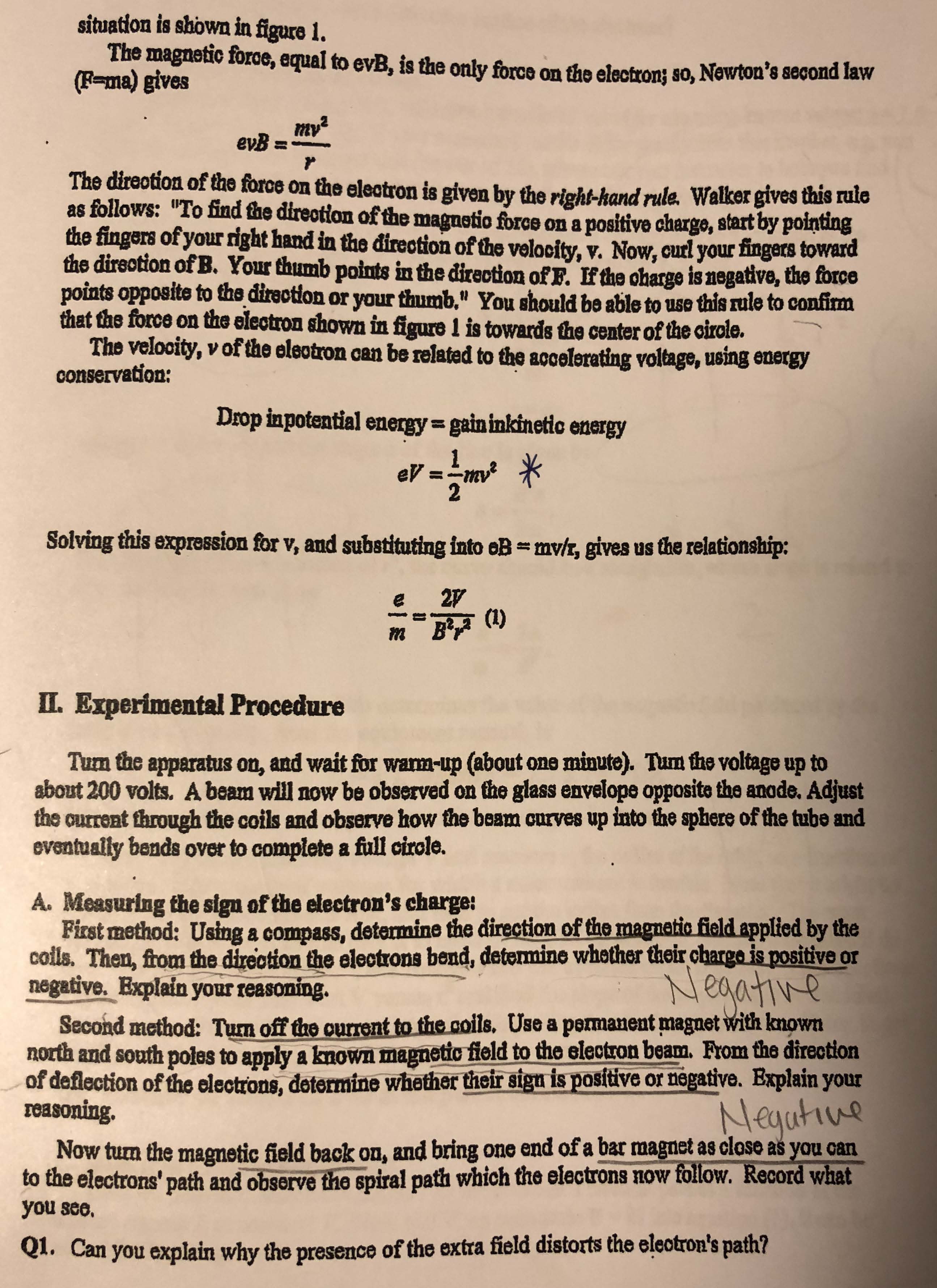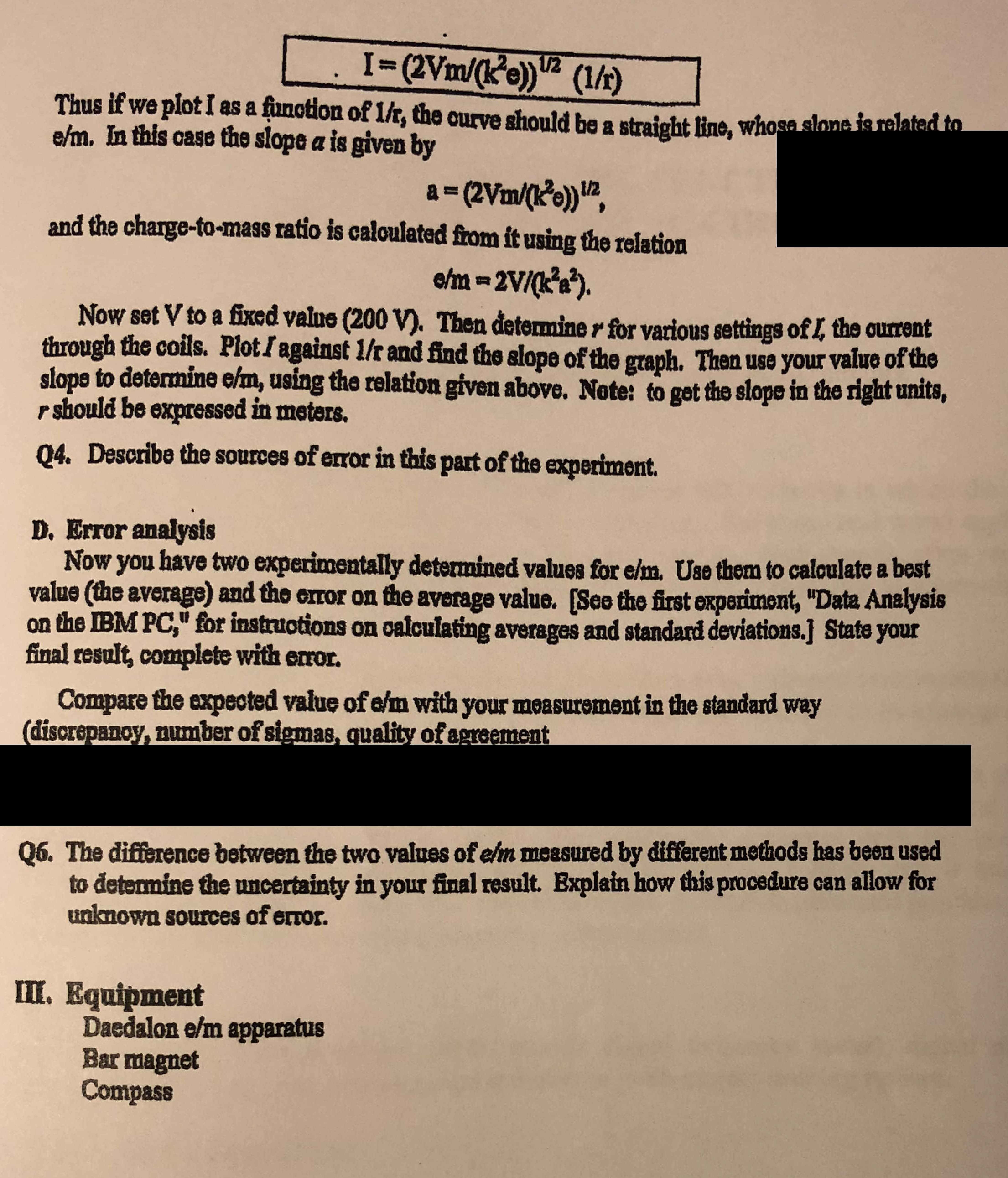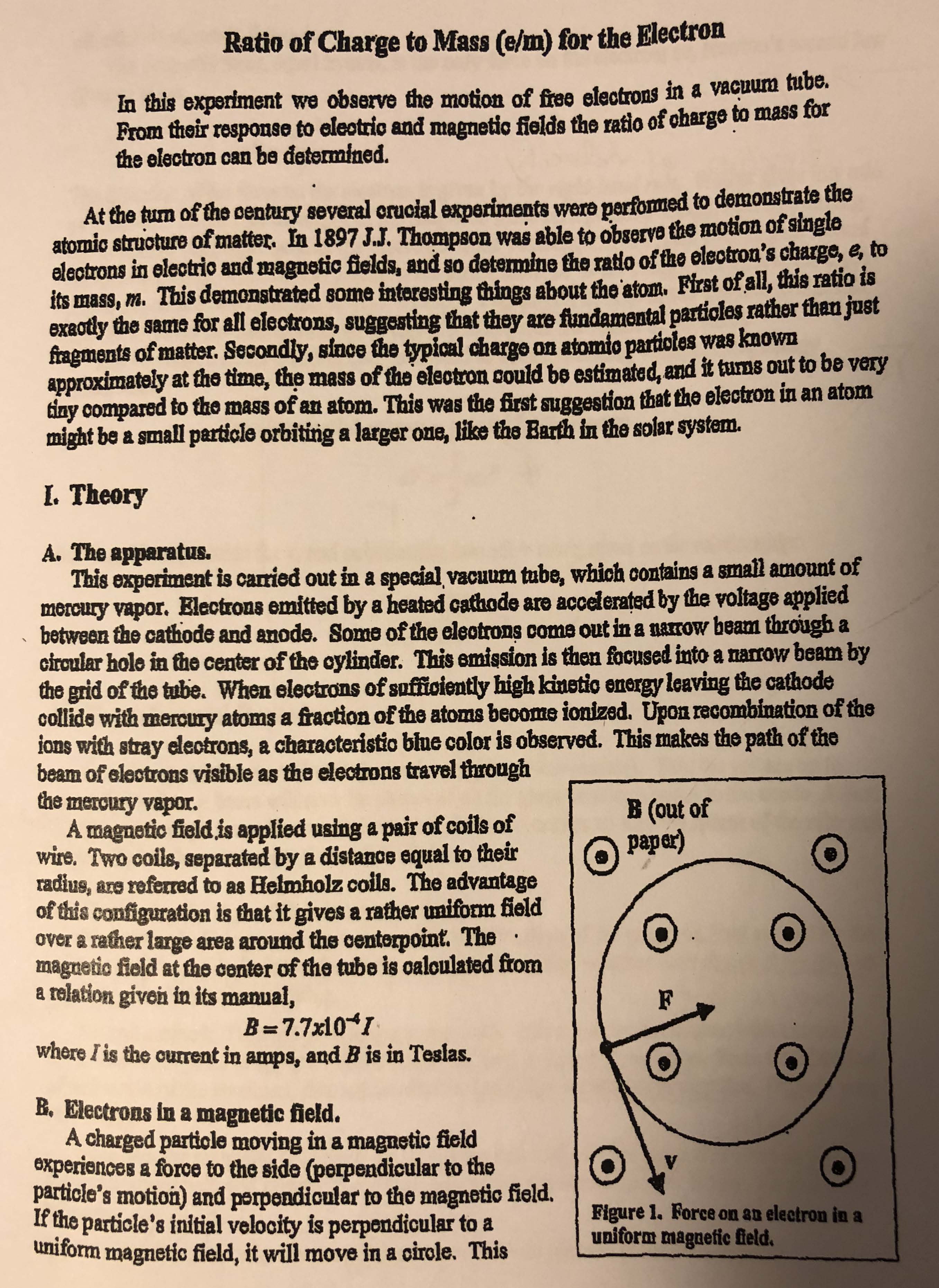 Ratio of Charge to Mass (e/m) for the Electron In this experiment ...