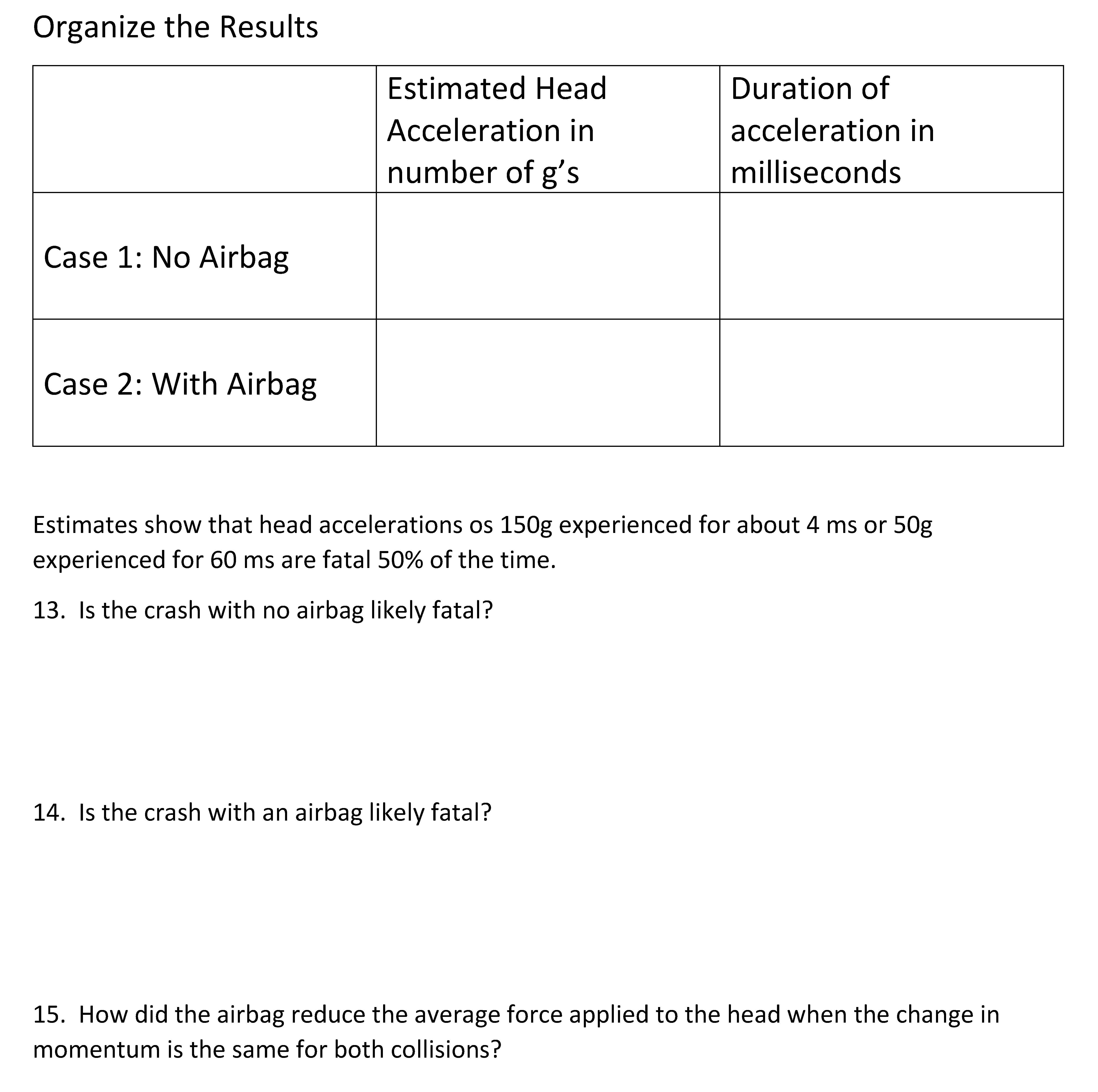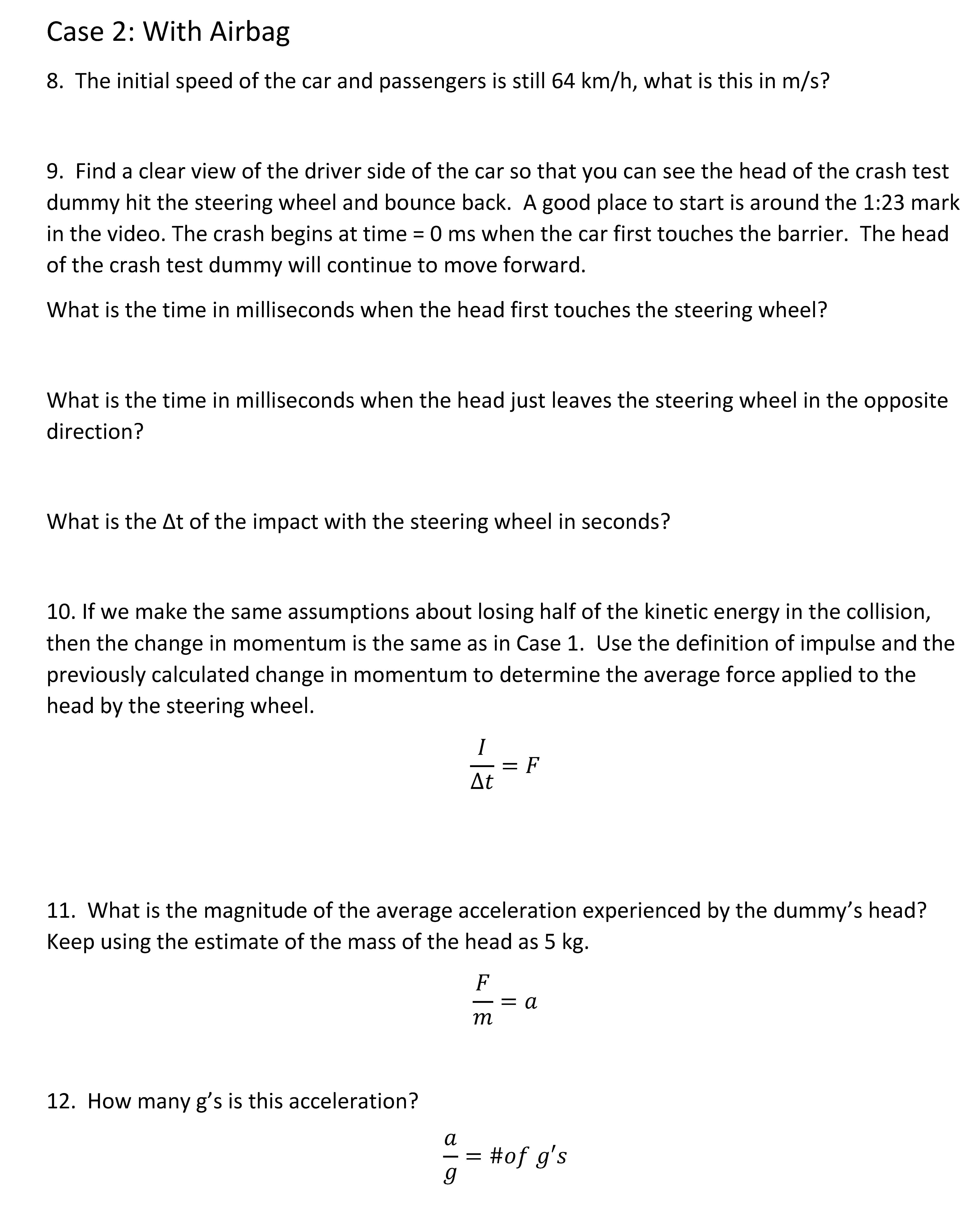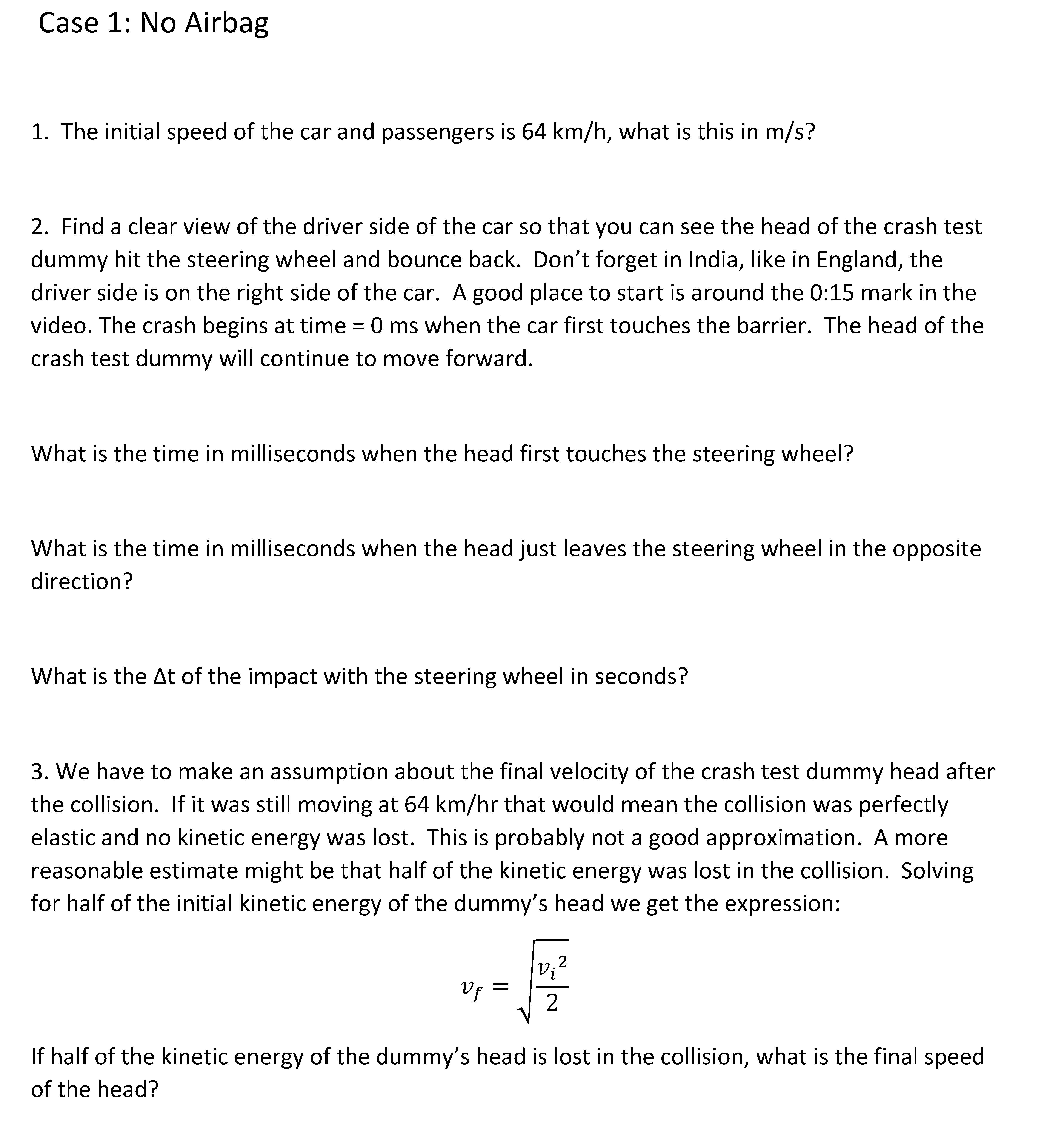 Case No Airbag 1. The initial speed of the car and passengers is64...