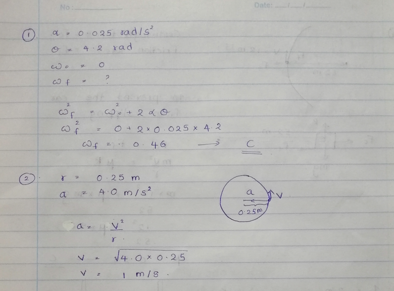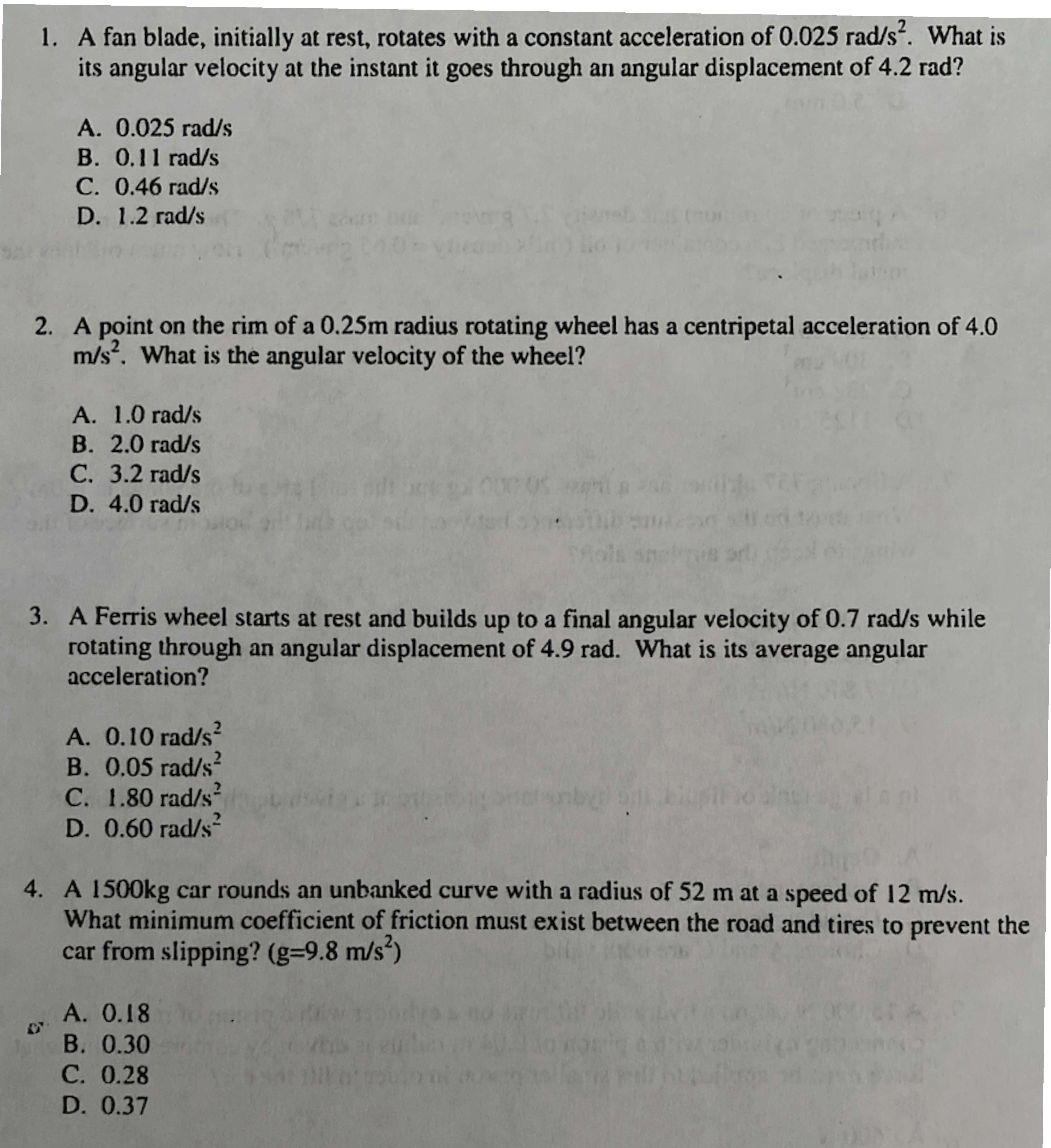 A fan blade, initially at rest, rotates with a constant acceleratio...