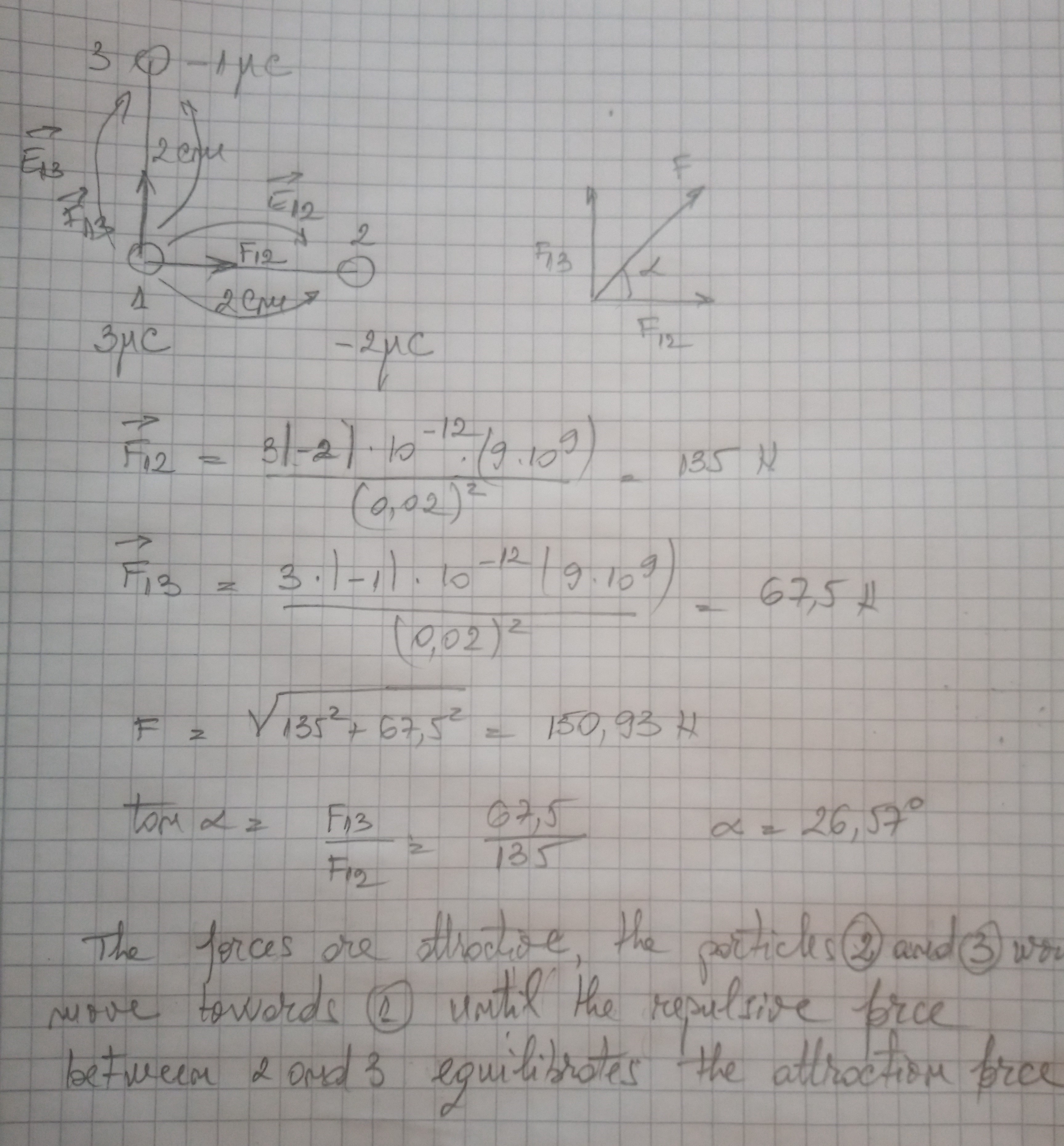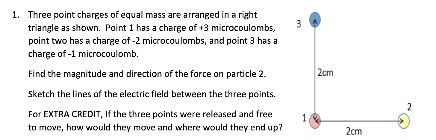 1. Three point charges of equal mass are arranged in a right trian...