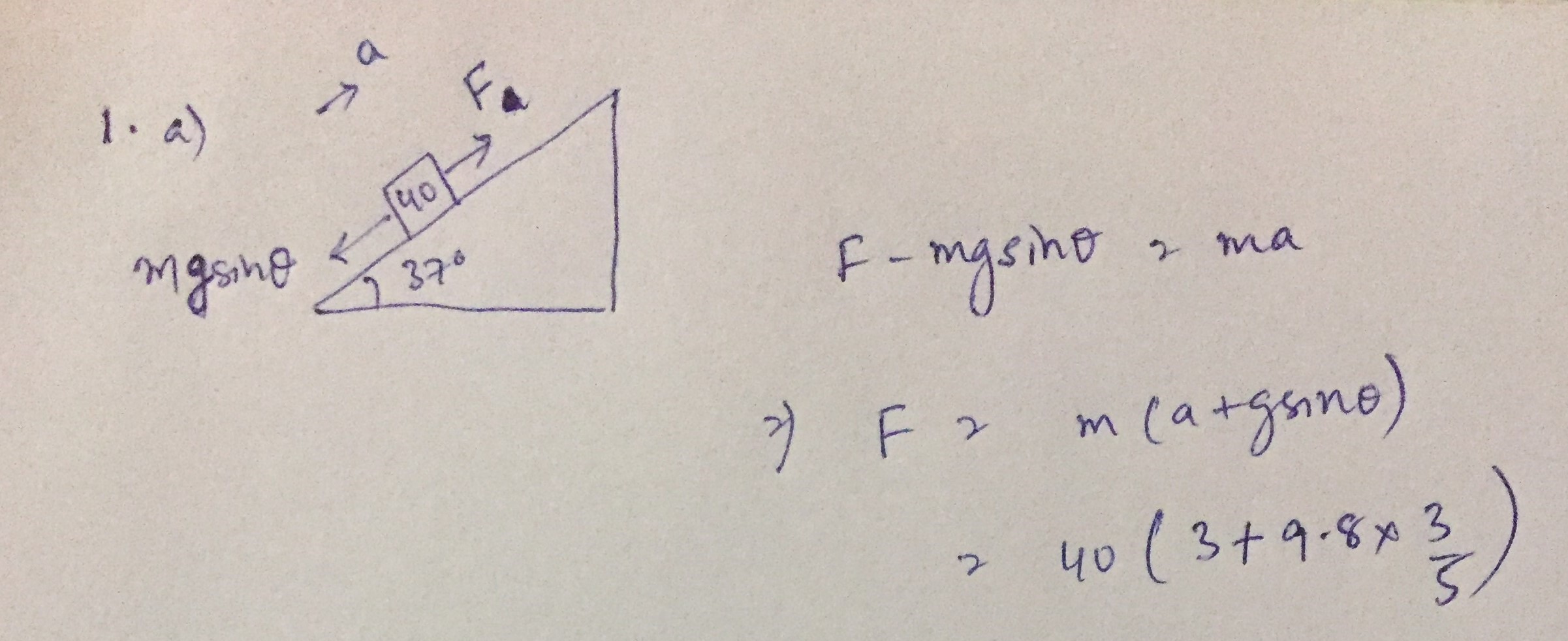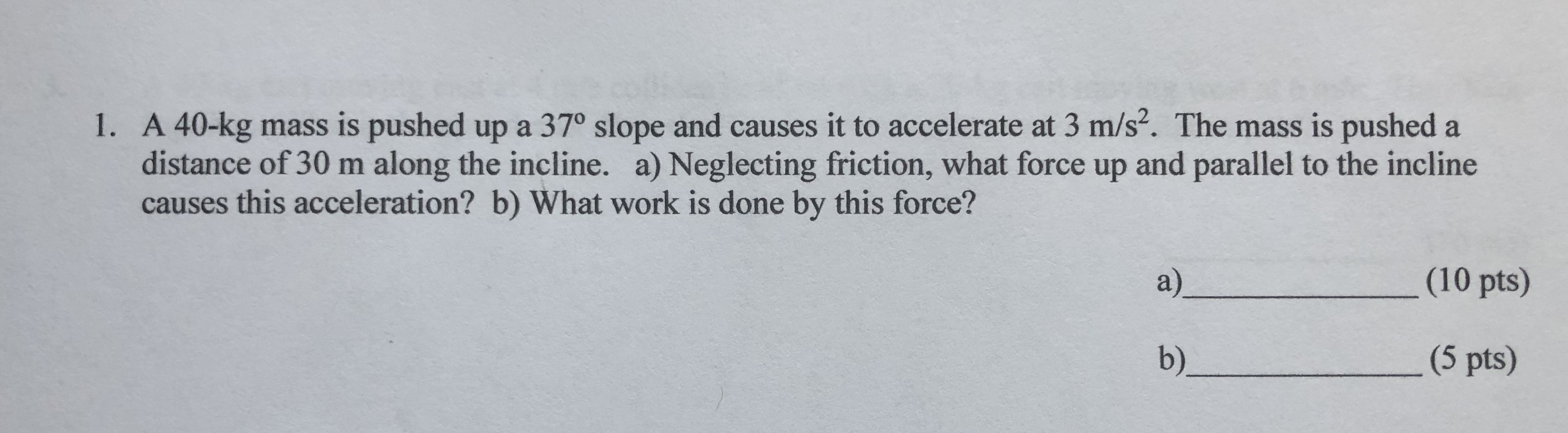 1. A 40-kg mass is pushed up a 37° slope and causes it to accele...